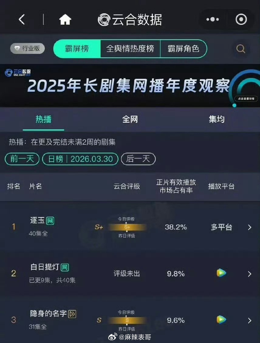 迪丽热巴和陈飞宇主演的《白日提灯》数据上来吧连续三天都是上涨趋势,从开始的7.8%到了现在的9.8%了目前电视已经播出了四分之一,还有没有爆的可能性呢?