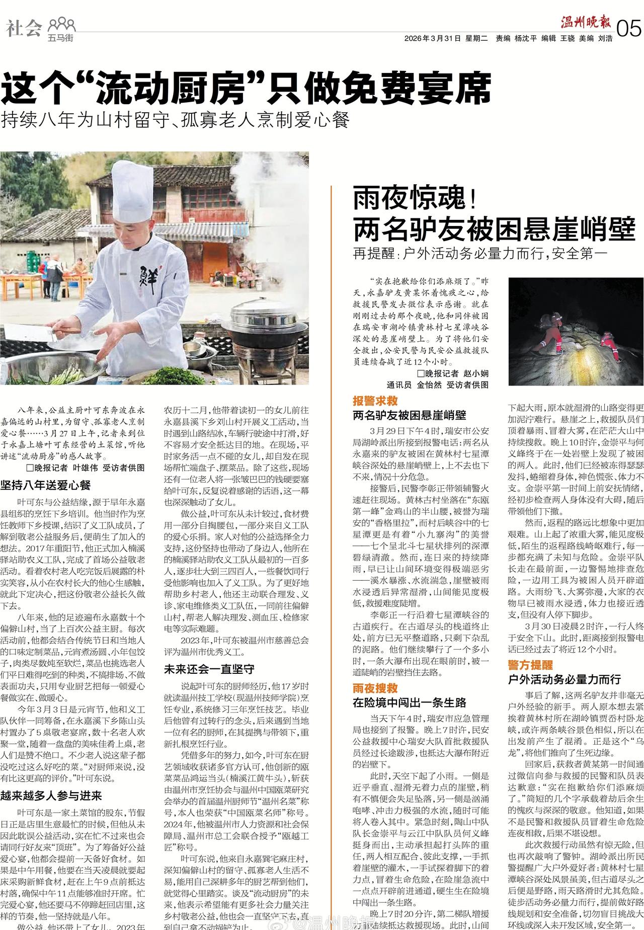 【谁该为“任性”驴友买单】雨夜,悬崖,12小时连续搜救——当民警和公益救援队员拖着疲惫身躯,终于在凌晨2点将两名被困驴友救出时,这场惊心动魄的救援行动总算画上了句号。然而,感动与庆幸之余,一个问题不容回避:公共资源的巨大付出,为何总要为“任性”的冒险行为一次次买单?网页链接