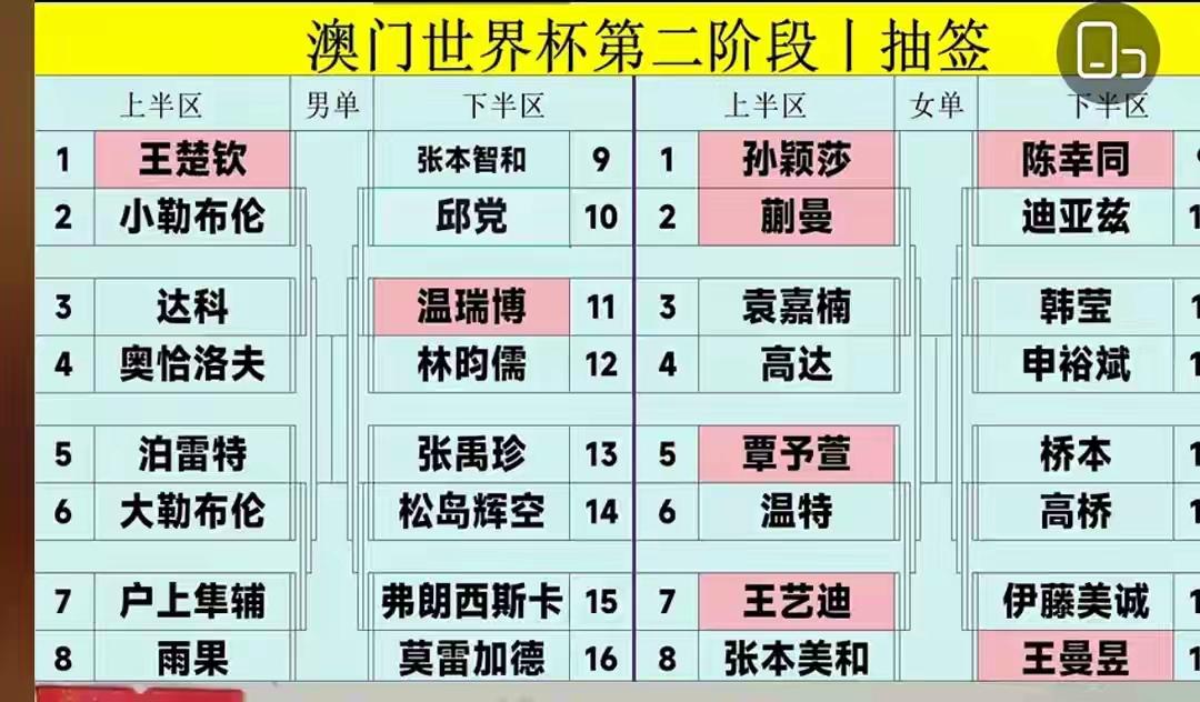 澳门世界杯第二轮抽签结果新鲜出炉,莎莎首战就是蒯曼,两个人都被架在“火上烤”了,这也太离谱了吧!