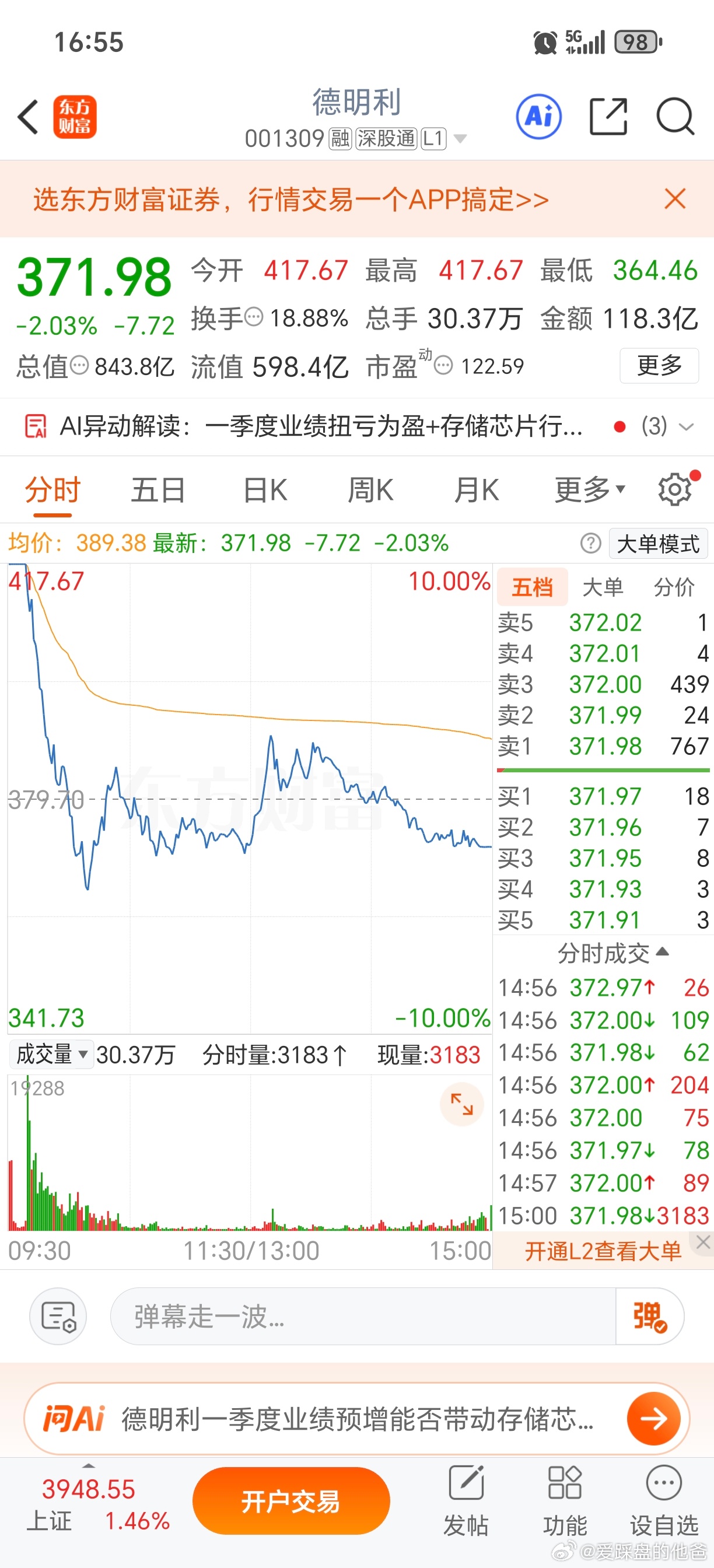 今天是打板选手的噩梦,明天再低开,就亏十几个点。