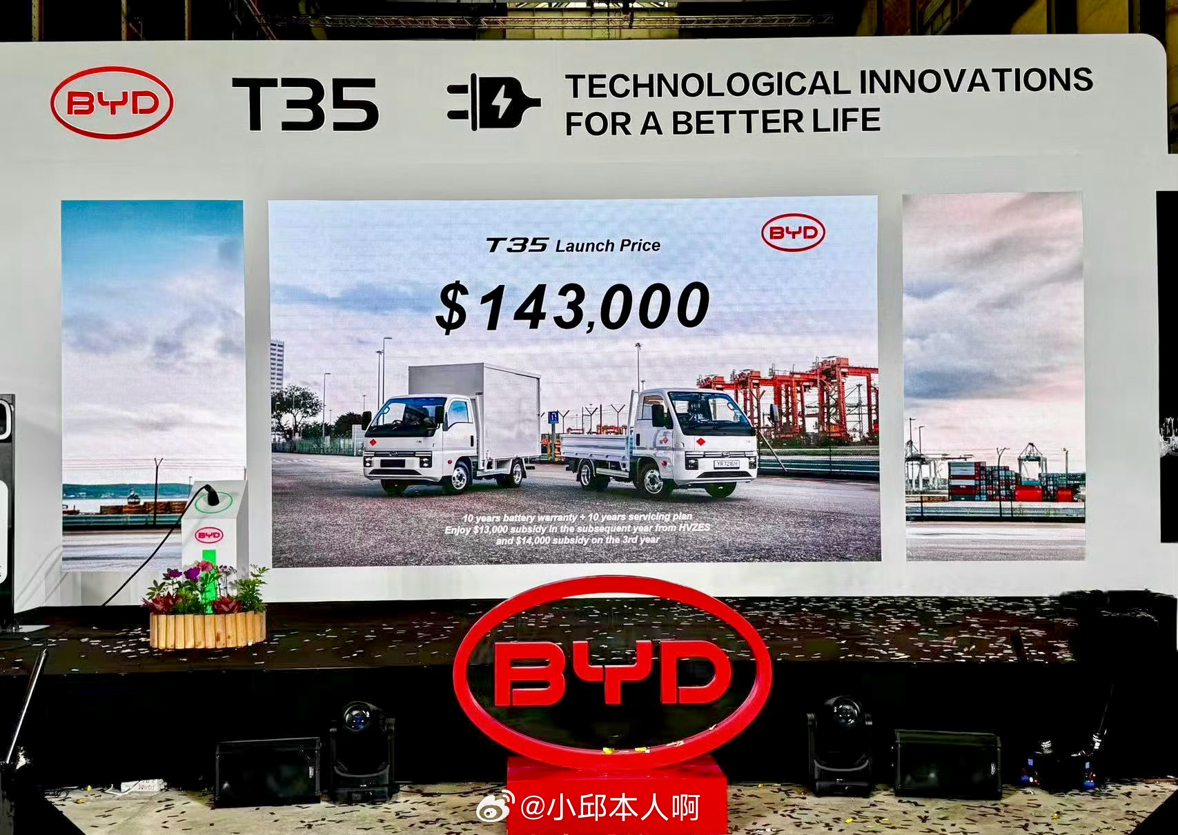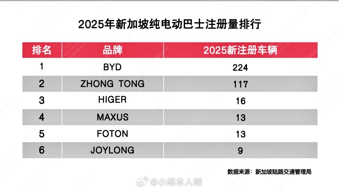 商用车方面,比亚迪进入新加坡更早。电动巴士2018年就进入当地,累计订单超过500台,市场占比超过60%。2025年10月,比亚迪拿下新加坡第一个L4级自动驾驶巴士试点项目,计划2026年下半年在市区运行。2020年,比亚迪成为新加坡第一家卖电动卡车的企业,2021到2025年累计注册1450台。2026年3月,纯电小卡T35在当地上市,让商用车的车型更齐全。