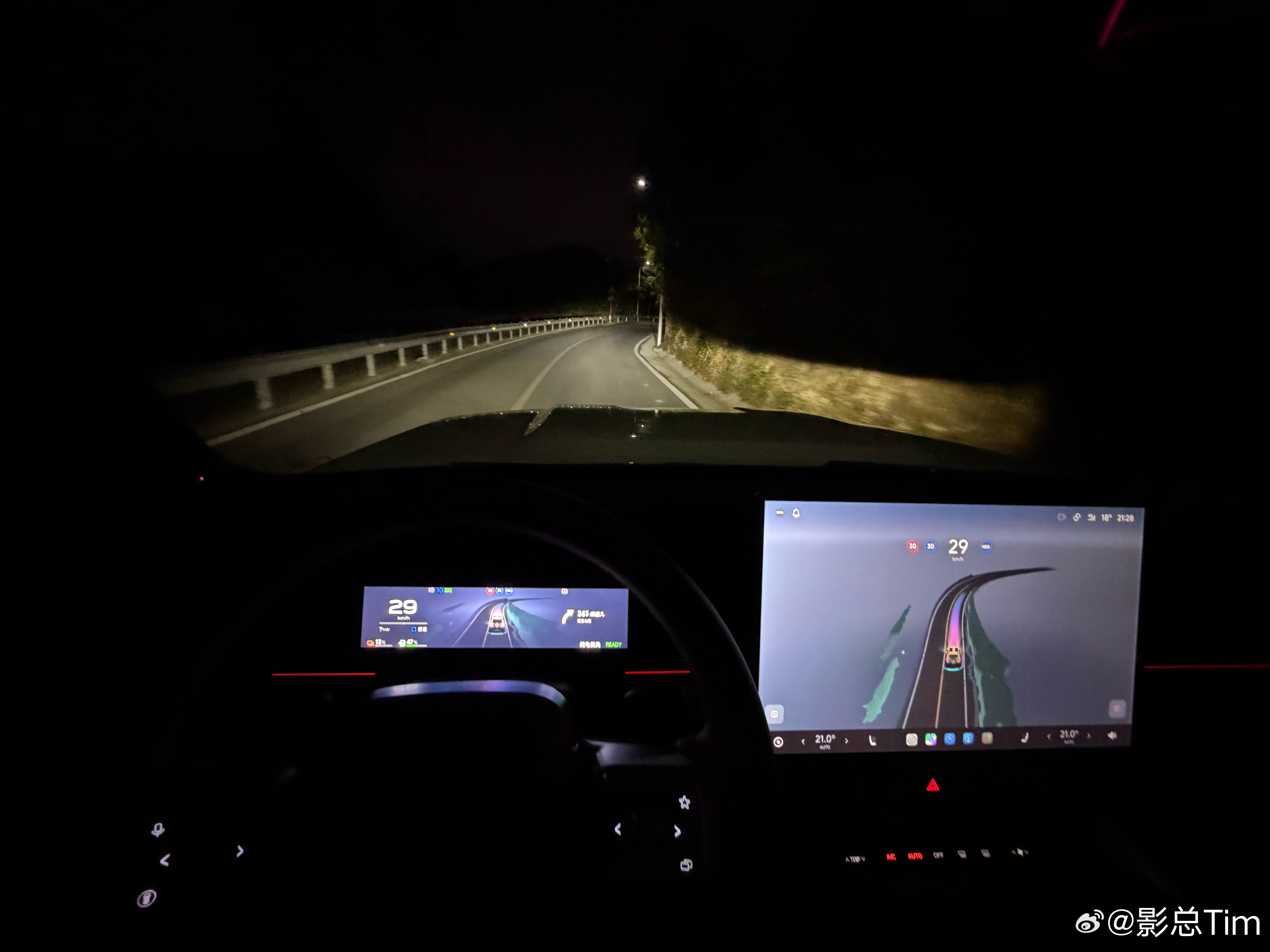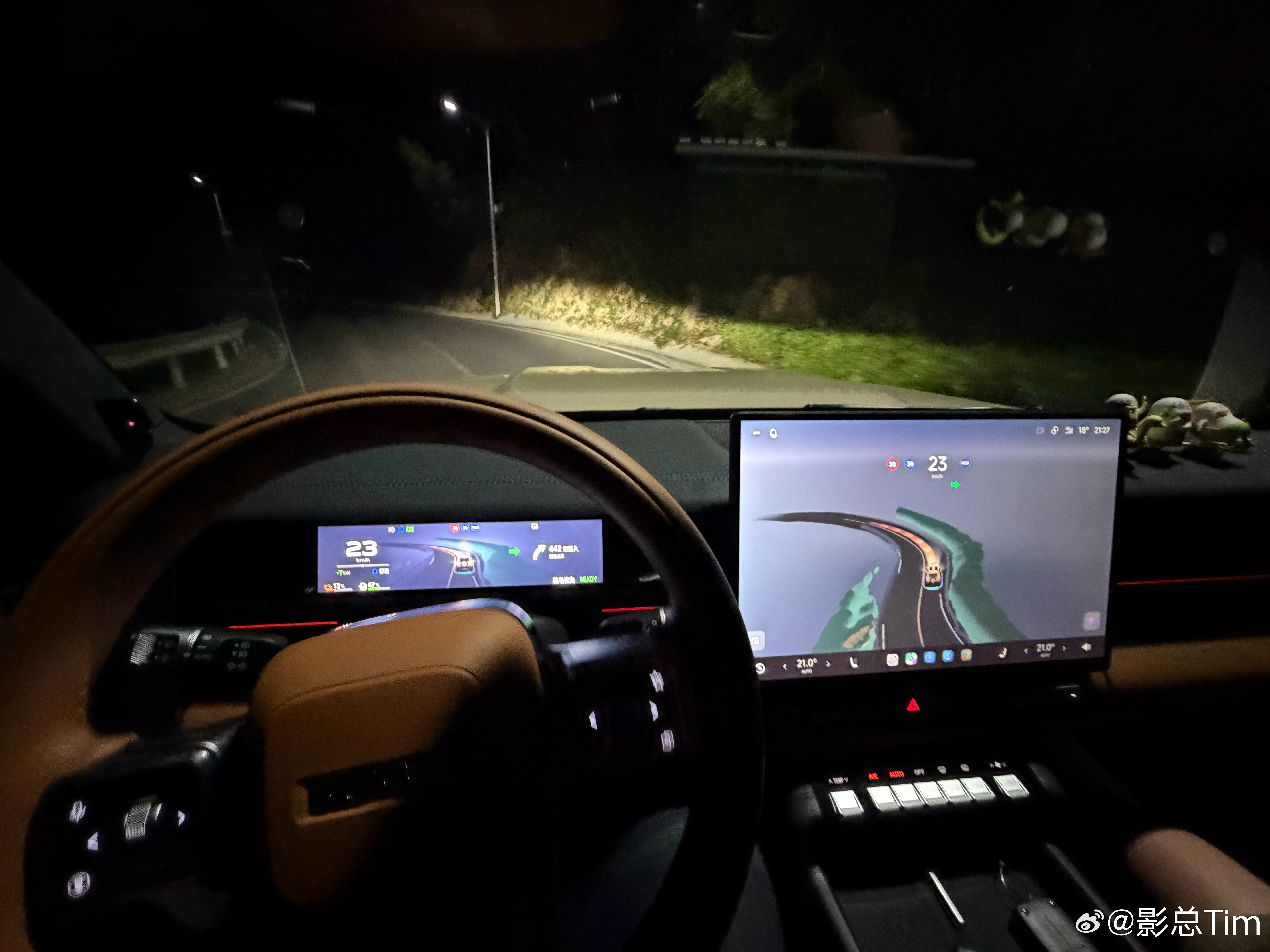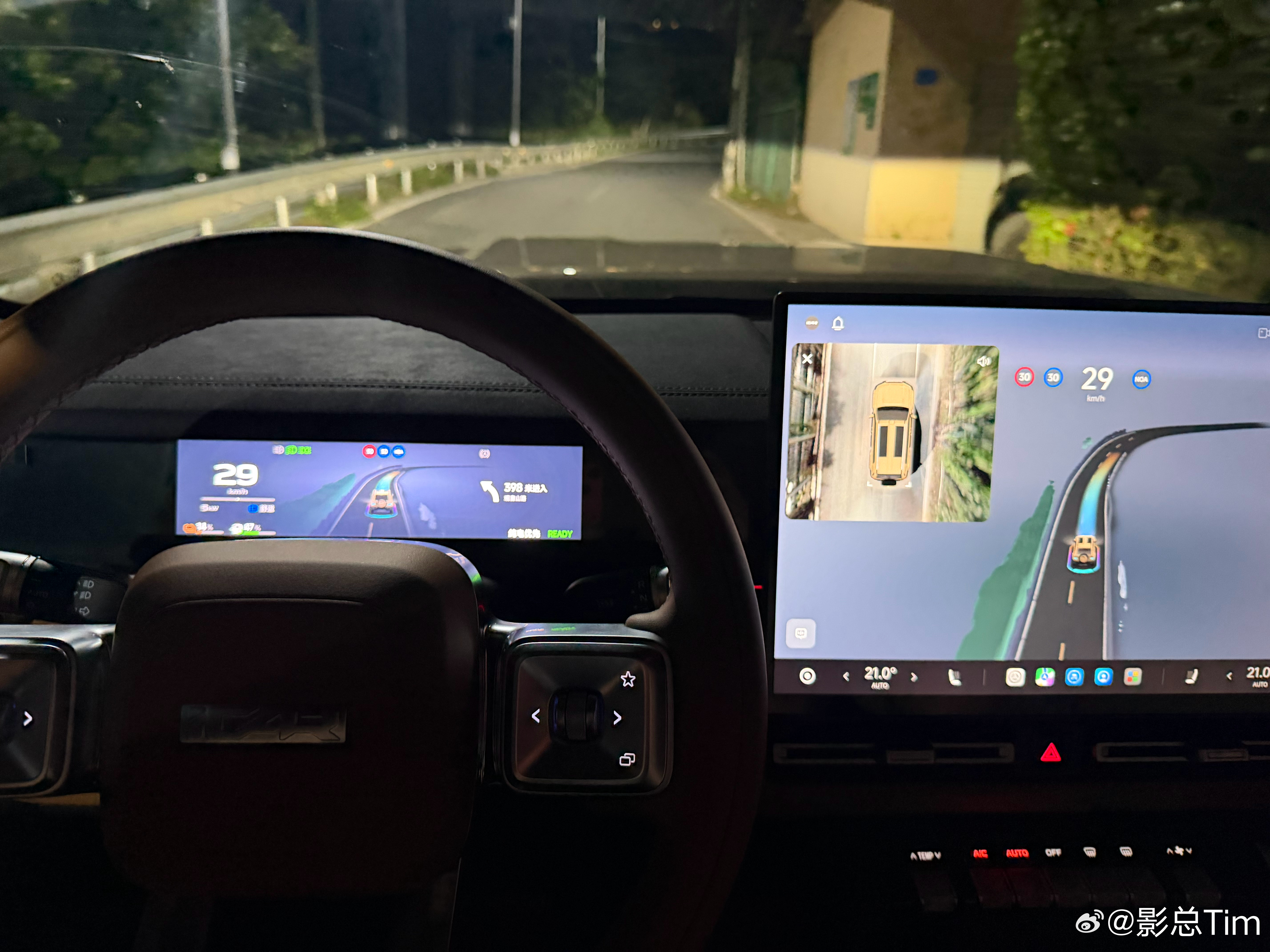晚上在厦门跑山, 推荐的的路线,iCARV27 这个体型的车子在狭窄的山路弯道可能做到游刃有余,绕行避让等操作几乎是 0 延时完成的,这种能见度条件下,可以说比很多人类司机的跑山技术要高很多,在极窄路面上甚至可以利用道路外面的空间来避让对方车辆通行后再起步通过。最重要的一点就是除了绕行和博弈会车等场景,全程都能尽量保持在自己一侧的车道线内。