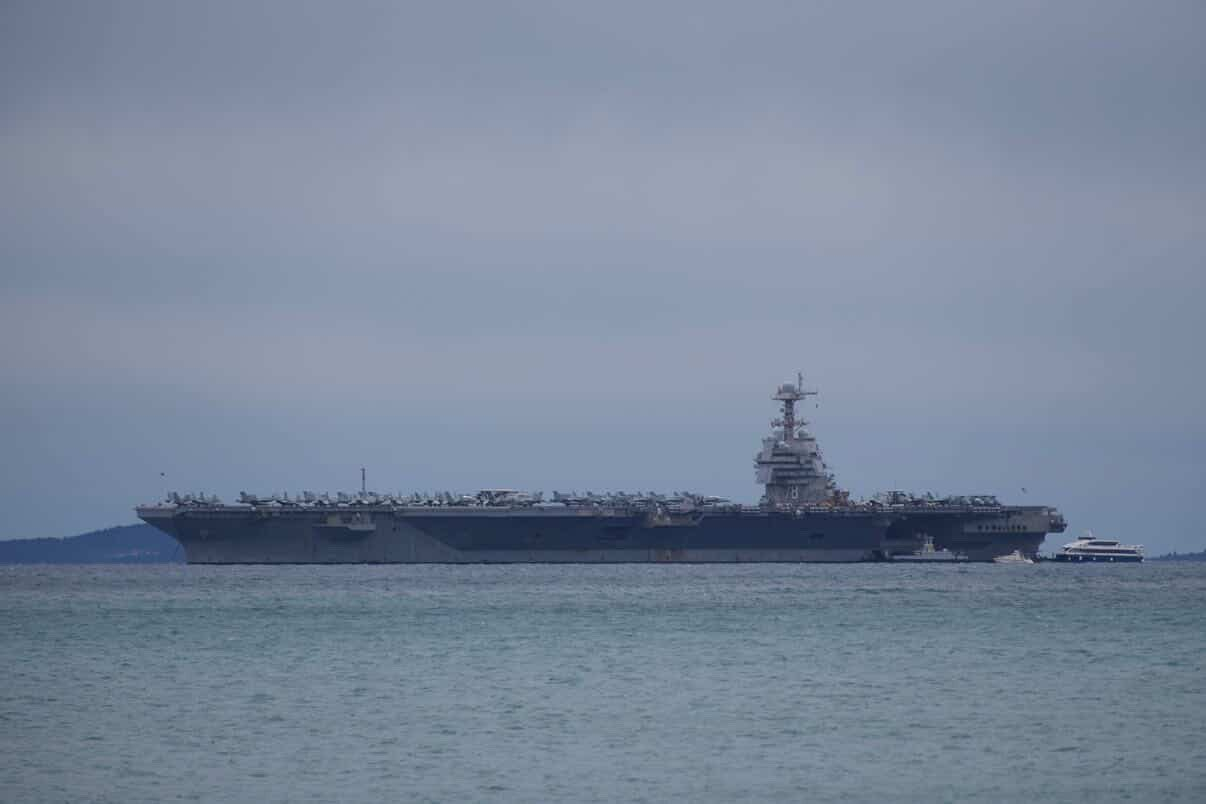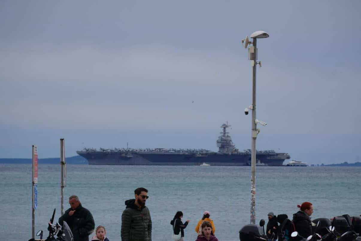 停在斯普利特的美国海军福特号航母(CVN-78)——其实很不理解为什么美国坚持要让福特号继续部署,其在美国此次对伊朗的军事行动中几乎没有发挥什么作用。