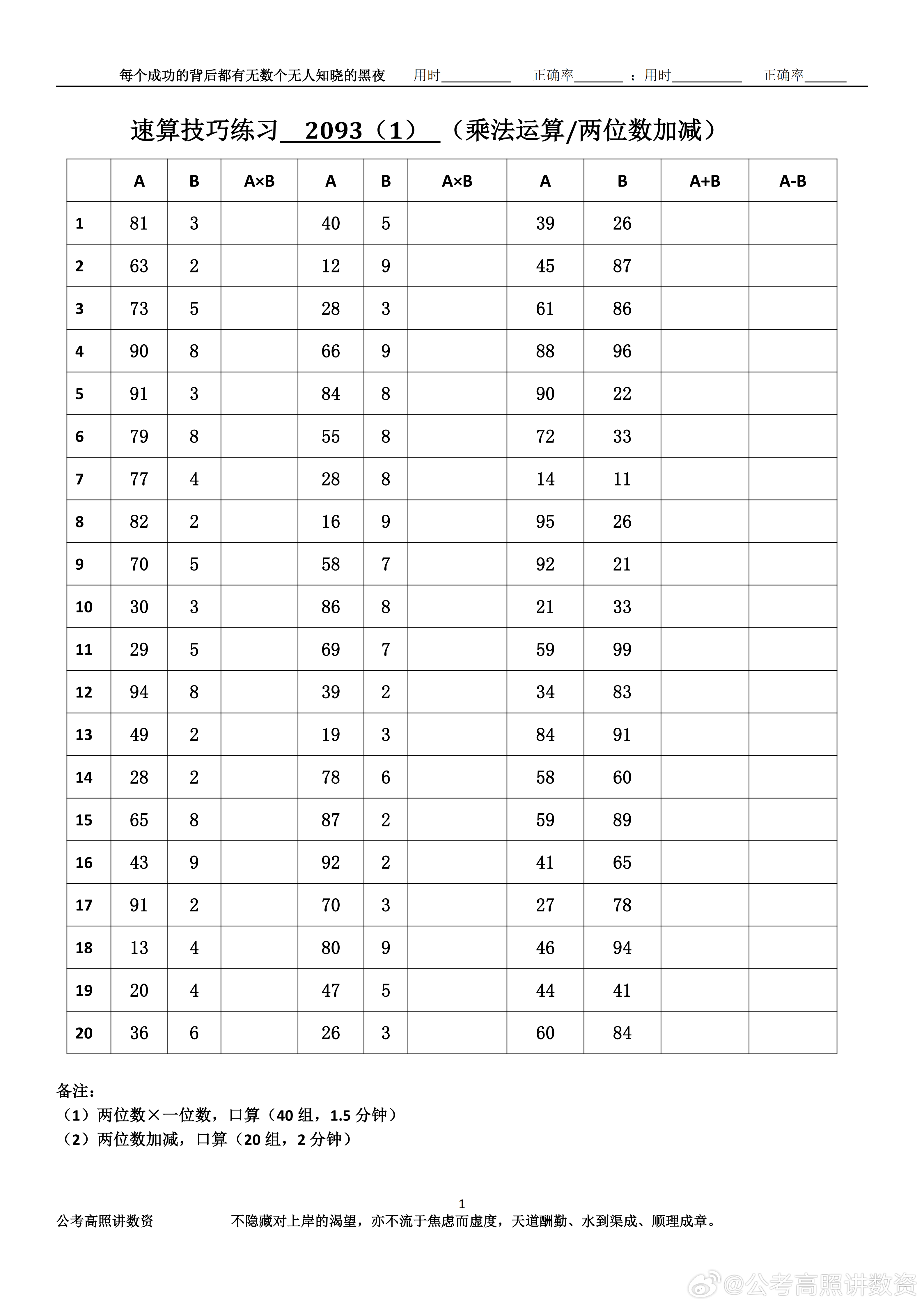 跟着高照练速算决战公考 速算练习2093相信自己,努力学习。速算链接汇总:网页
