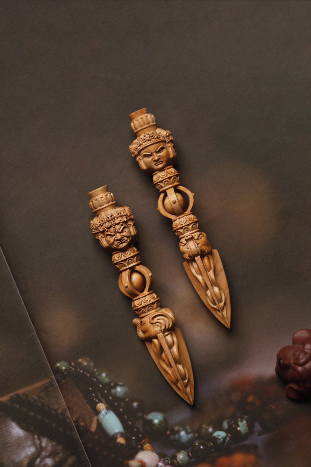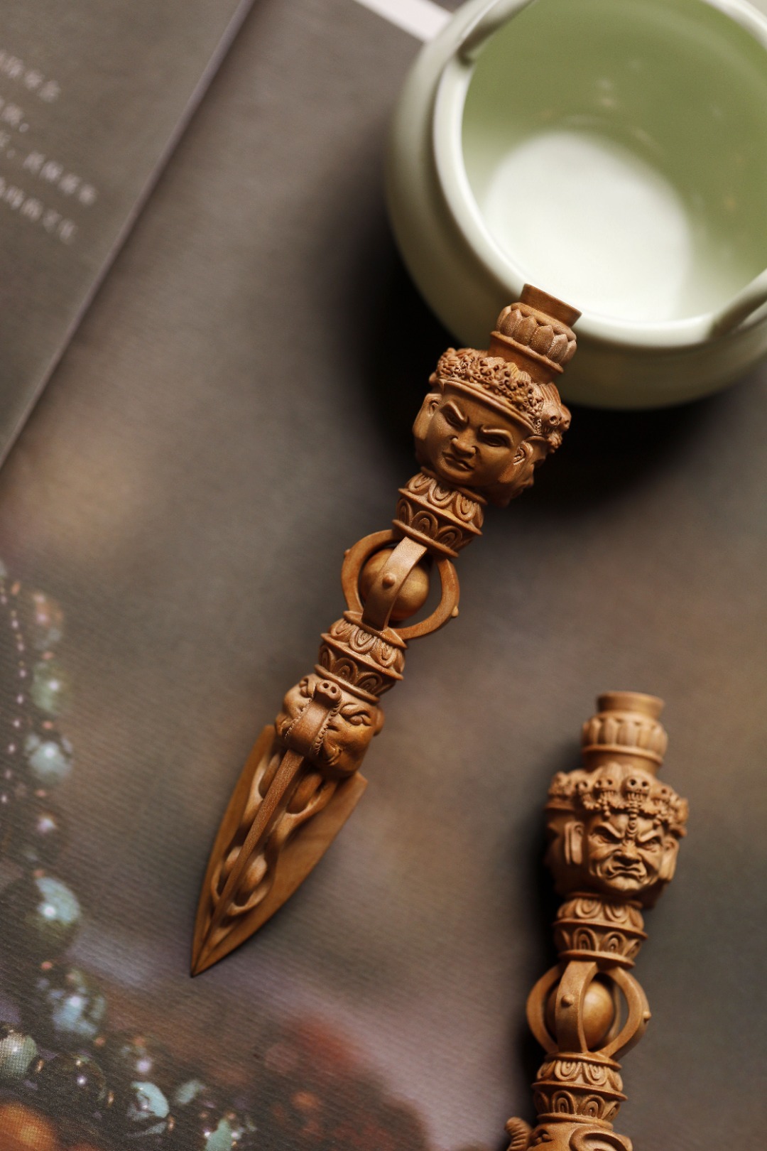 老山檀香 | 金刚杵择料细腻凝润,雕刻精湛,降魔杵在佛教密宗中,象征着所向无敌、