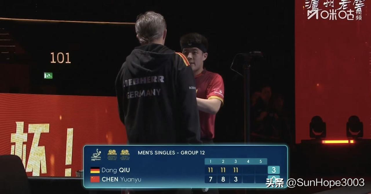 陈垣宇0-3输给邱党,被邱党压着打了三局, 止步澳门冠军赛小组赛。 这一场比赛,打之前就知道会有些困难,但没想到这么困难, 三局基本上是没打出气势来, 气势上就输了,斗志不满。 第三局3:11输掉比赛。 邱党最近状态确实很好,但是今天咱们输的有点脆, 好好复盘,下一次赢回来。
