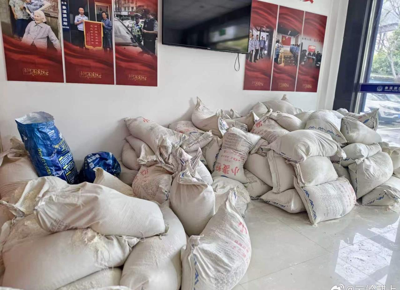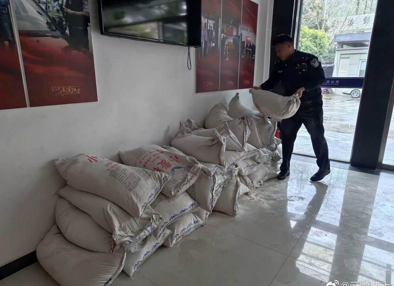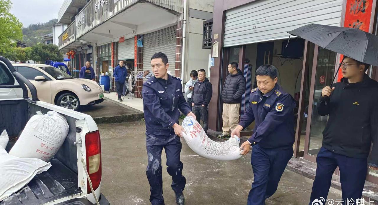 松阳G235国道上,5吨面粉突遭雨淋险成泥,村民冒雨抢收、民警午休守护,这场跨越