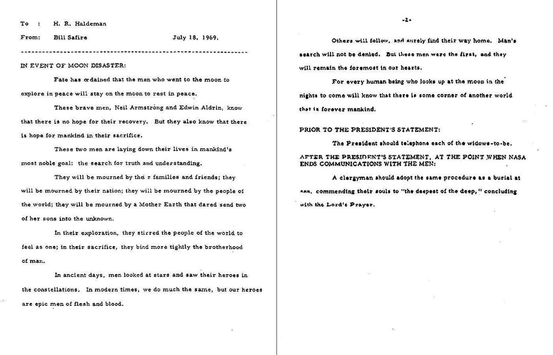 这是1969年阿波罗11号登月任务前,白宫为应对宇航员可能被困月球而准备的应急预案。当时NASA知道登月舱上升发动机有失败风险,一旦发生,尼尔·阿姆斯特朗和巴兹·奥尔德林将永久困在月球,而迈克尔·柯林斯在轨道上无法救援。白宫因此准备了名为“月球灾难事件”的声明,计划在宇航员氧气耗尽后由任务控制中心告别并切断通讯。实际上,这份声明由尼克松总统的撰稿人比尔·萨菲尔起草。迈克尔·柯林斯曾因可能独自返航而做噩梦,突显了任务的心理压力。