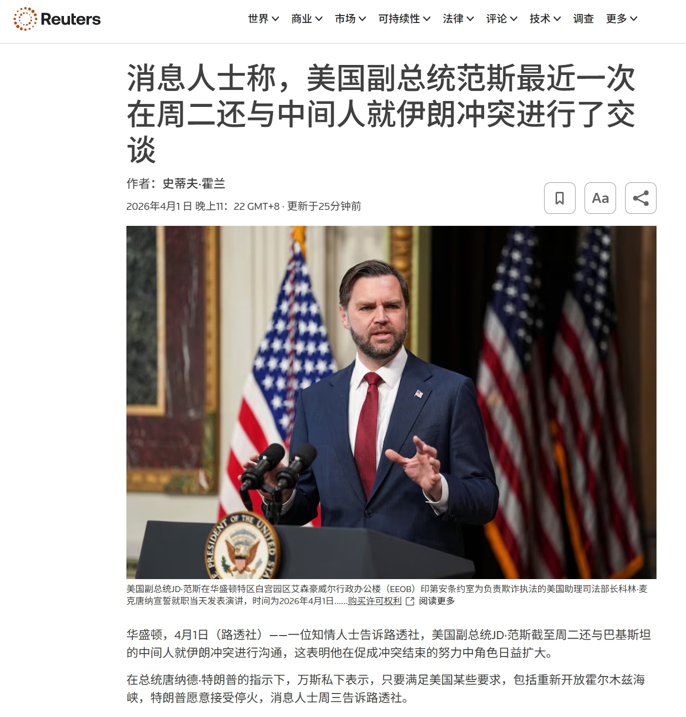 万斯称只要伊朗满足美国某些要求,特朗普就愿意停火——路透社报道,特朗普表示,美国的行动确保伊朗不会拥有核武器,现在他们已经没有能力,美国将很快离开,但是如果有需要,美国会返回进行零星的打击。