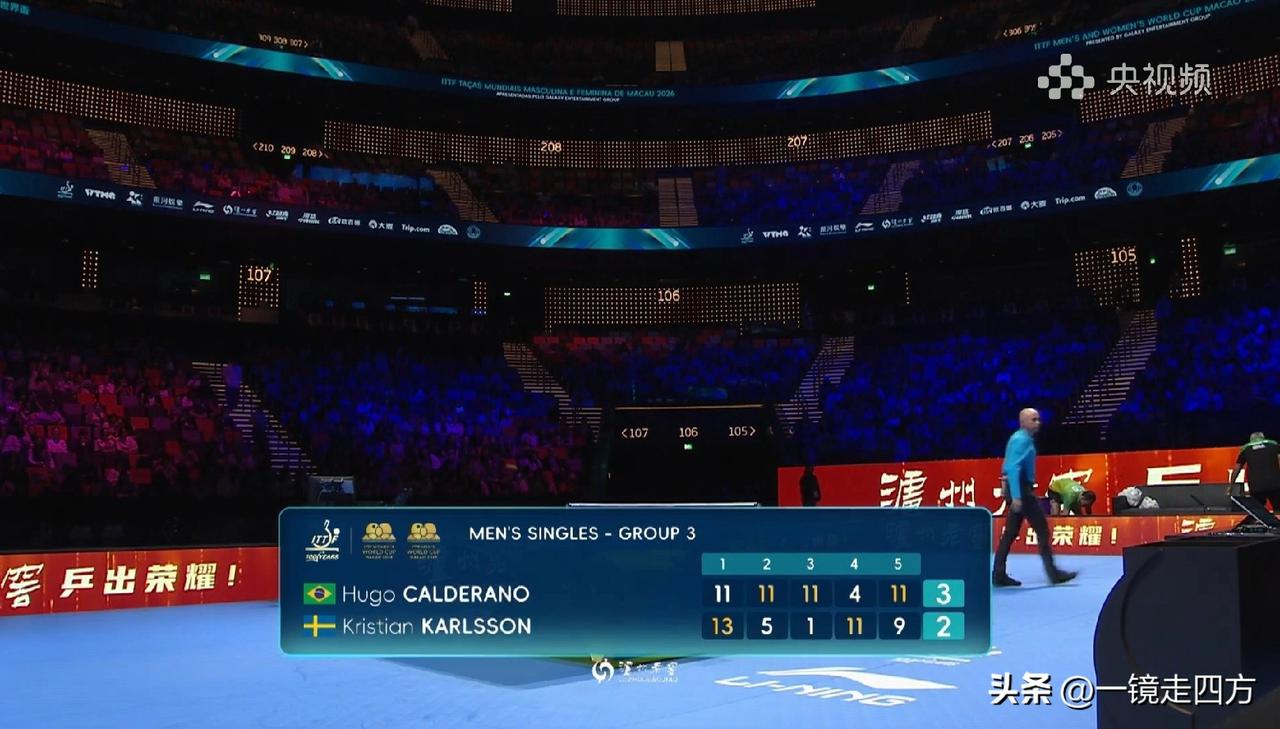 刚刚结束的一场澳门乒乓球世界杯男单小组赛差点儿爆出一个大冷门,卫冕冠军雨果在小组赛最后一轮对阵瑞典老将卡尔森,双方前四局战成2-2平,决胜局又一直拼到9平,雨果连拿两分,惊险取胜,拿到本组的出线名额,晋级16强。