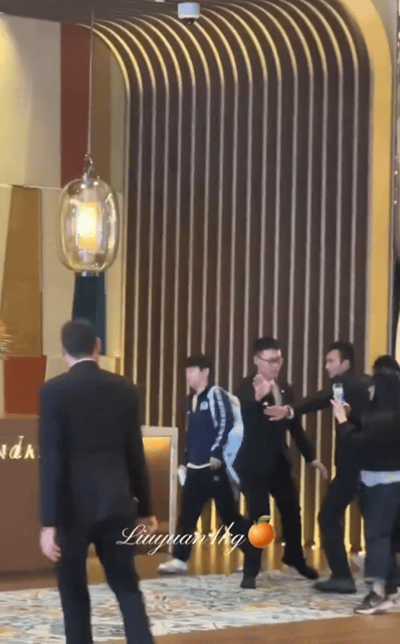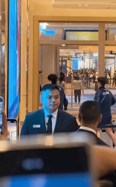 看到这十几个安保上来,就知道谁要来了, 对莎莎和楚钦的保护,必须要给澳门安保人员点赞。 从莎莎和楚钦要在房间出发去上训,工作人员就通知到所有安保, 看到他们都站到了电梯口周围,就知道他俩要下来了。 莎莎下来有人靠近她,两名工作人员直接上前隔开,周围的也开始移动, 一直护送到安全的隔离区。 楚钦也一样,有工作人员站在周围隔离人群。 澳门的安保确实很到位👍