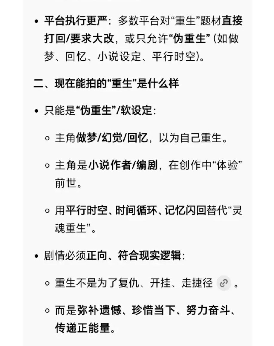 以后短剧也严格限制重生题材了, 以后没有系统爽剧了, 想重生可以, 但必须像中国