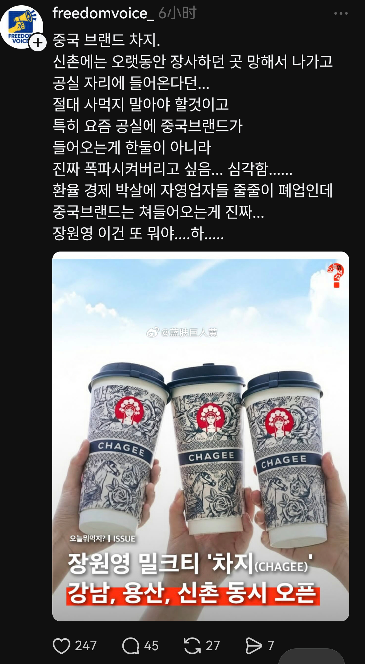 中国奶茶店入驻韩国,韩国人开始发牢骚(他们抱怨的语气跟某港曱甴简直如出一辙)