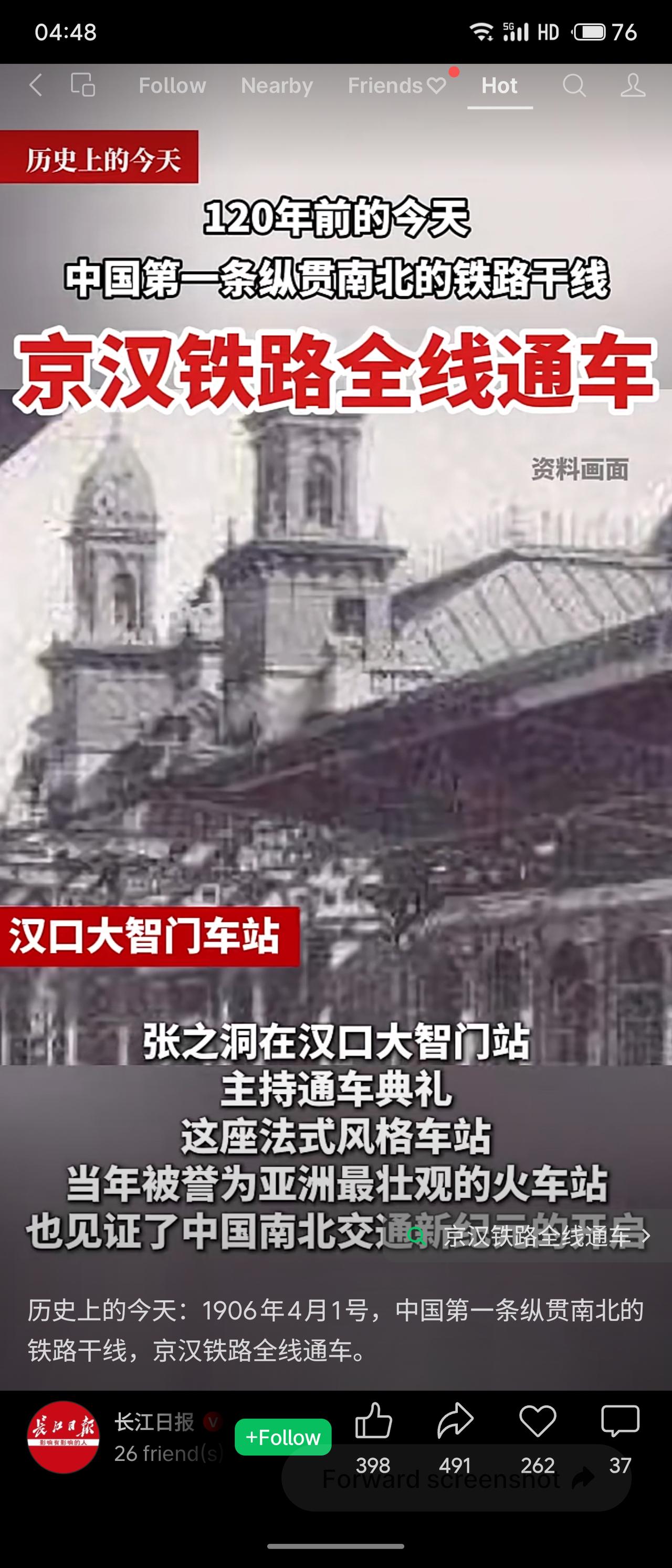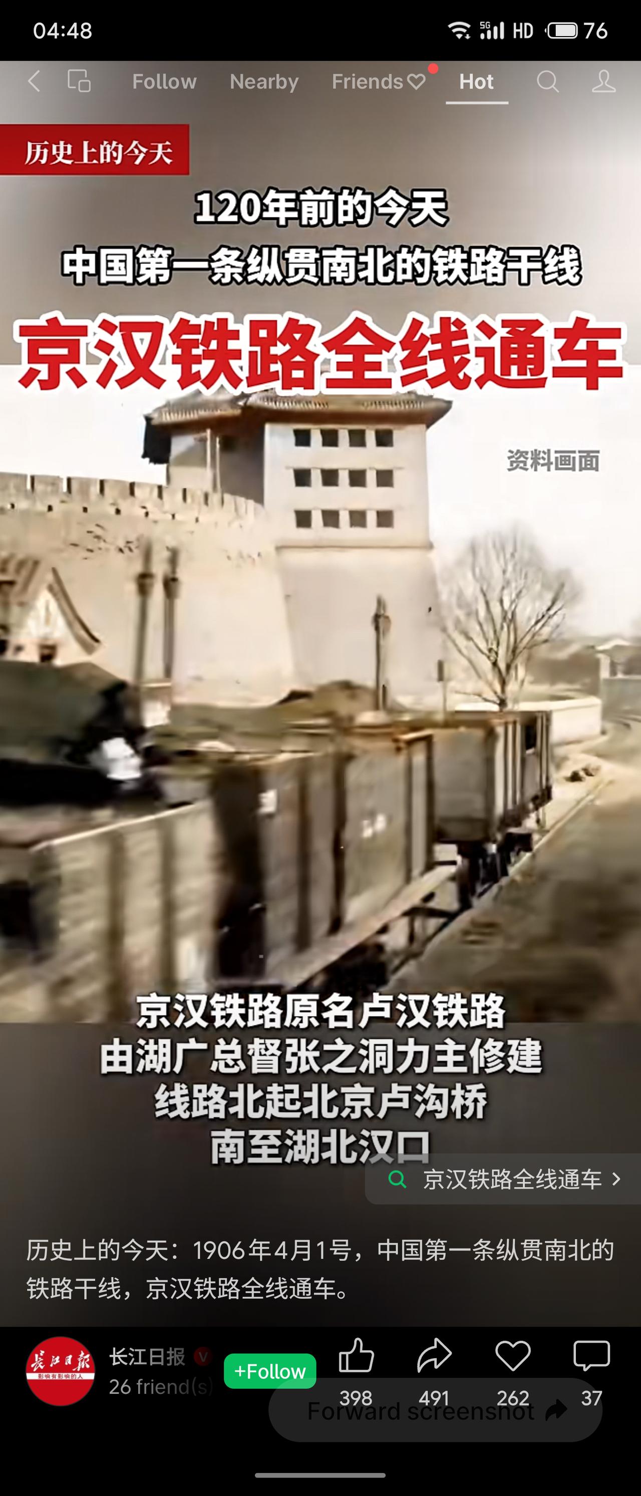 今年春天最想实现的心愿1906年4月1日,中国第一条纵贯南北的铁路干线——京汉铁路全线通车,今逢通车120周年。该路原名卢汉铁路,由湖广总督张之洞力主修建,北起北京卢沟桥,南至湖北汉口,干支线总长1311.4公里。因国库空虚,筑路资金向比利时借款。工程跨越数省,建设者克服地形复杂、黄河天险等困难,肩挑手扛艰苦施工八年。汉口大智门车站为通车典礼所在地,这座法式风格车站曾被誉为亚洲最壮观的火车站。京汉铁路的建成,标志着中国南北交通进入新纪元。