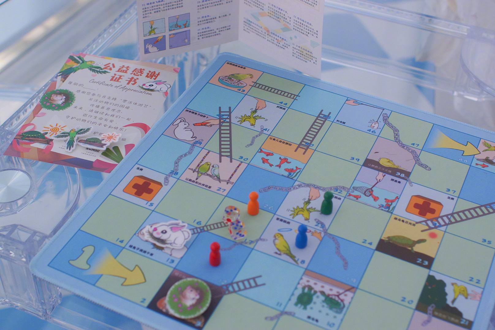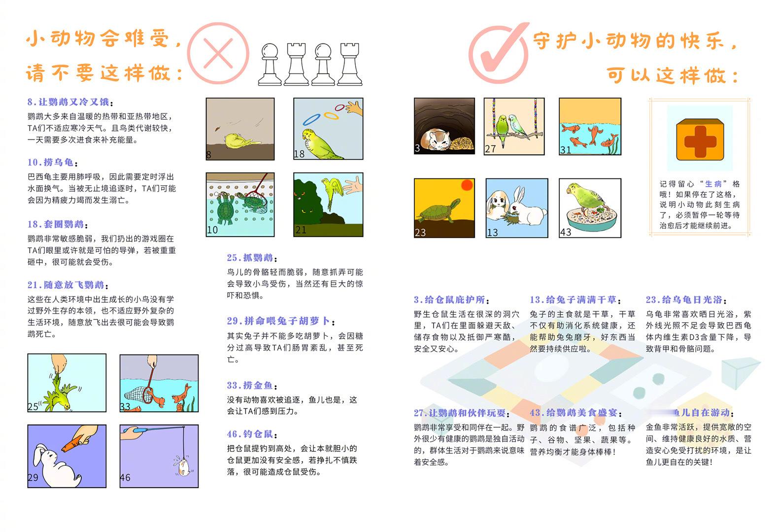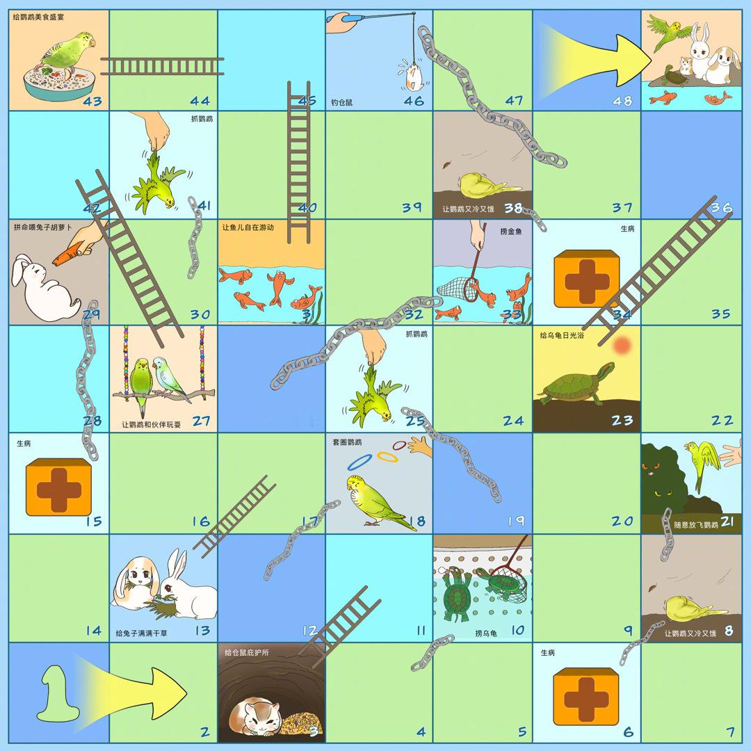 赶快保存图片并将游戏棋打印出来吧,带上家人朋友在假期一起边玩边学,新的一年化身动物朋友们的守护大使吧!