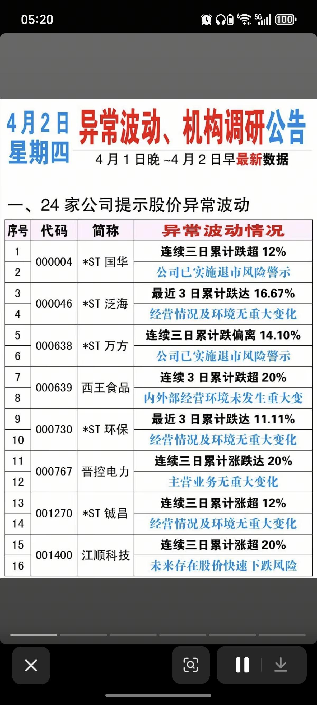 4.2周四 上市公司利空消息汇总! 三家公司被立案调查! 其他: 8家公司提示终止上市风险、 4家公司提示退市风险、 6家公司重整、 6家公司发布风险警示、 24家公司股价异动公告 67家公司机构调研报告