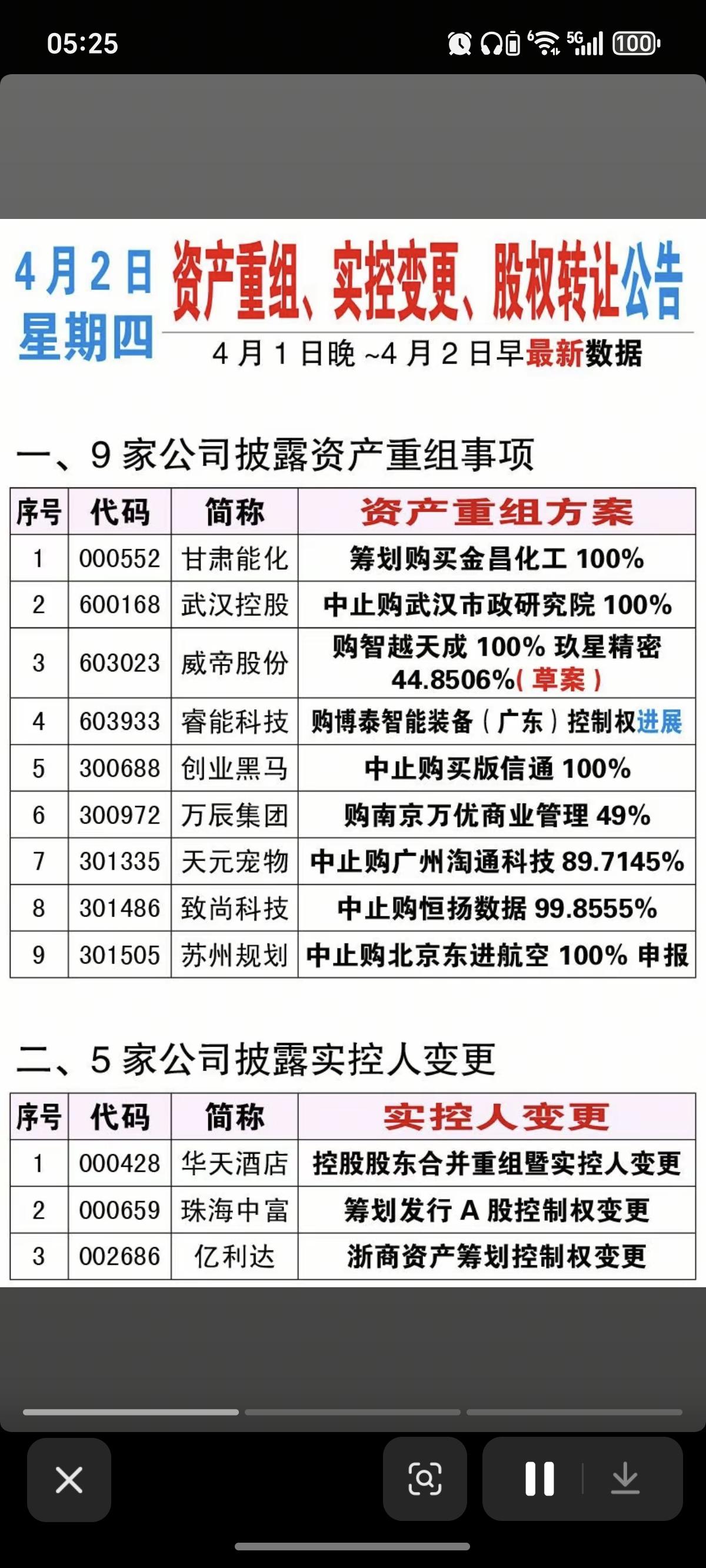 4.2周四 上市公司公告精选汇总! 2家公司员工持股减持计划。 32家公司股东披露减持计划 4家公司披露增持计划 7家公司法拍股份 4家公司回购股份 9家公司资产重组事项 5家公司实控人变更 10家公司披露股权转让