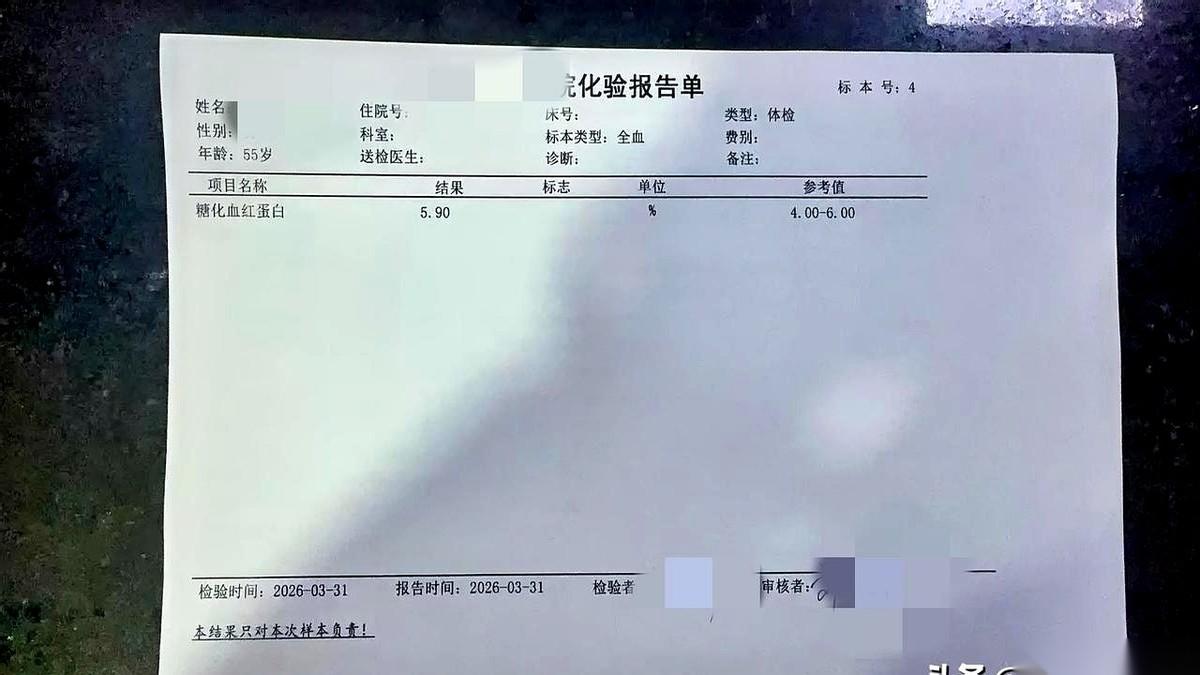 针头扎下去,他眼皮都没眨一下,等来的结果却像一记闷棍:空腹血糖6.0,糖化血红蛋白5.9。 报告单上的数字,刀口舔血般地擦着“正常”的边儿。每一点都摇摇欲坠,差一步就跌进“不正常”的深渊。他捏着纸张,关节发白。 回想以前体检,总有那么一两项,不是高一点就是低一点,这次倒好,全员“及格线”上漂着。旁人或许松了口气,他心里却绷得更紧。 因为他知道,这只是“大考”成绩。平时指尖一扎,机器上的数字常常窜到8以上,那是身体偷偷亮起的红灯,每次都让他心头一沉。 那些平时的高点,才是真相。这说明,他那条控糖的路,从没真正停过。 不是结束,而是更严峻的开始。他把报告单塞进包里,就像把一个无形的闹钟重新上紧。现在他清楚了,每一口饭,每一步路,都将是一场新的战役。 有人说,体检报告好就是万事大吉,你觉得呢?