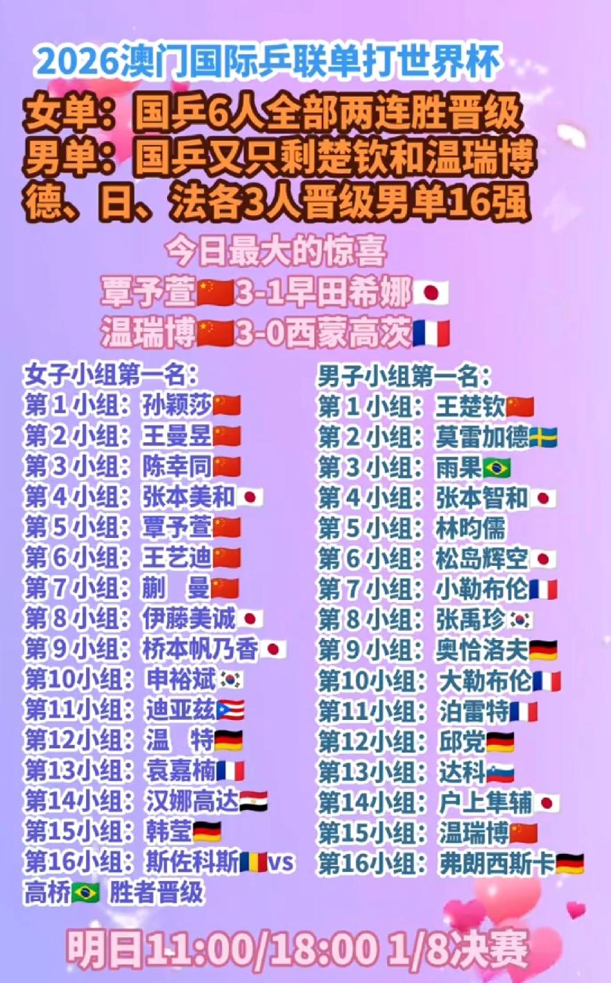 澳门世界杯淘汰赛开打,孙颖莎德比蒯曼,王艺迪阻击张本美和 4月2日