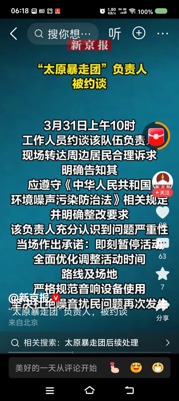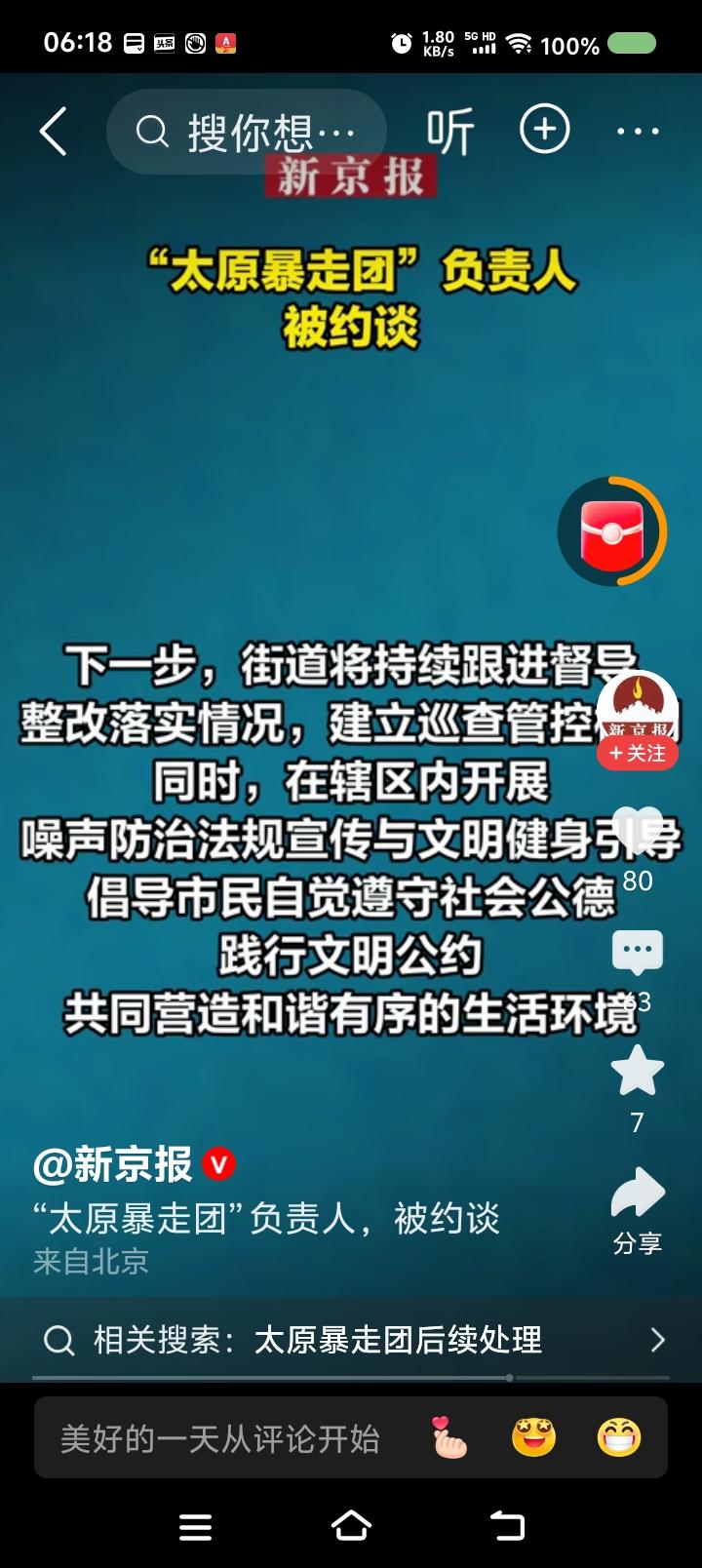 严惩“暴走团”的不法行为—— 据报道,某“暴走团”凌晨四点放音乐,严重扰民。有关部门已找负责人约谈。 点评: 一、听说有的“暴走团”有占街行为,扰乱交通秩序,必须法办! 二、噪音污染,扰民,是最严重的社会问题之一。还有,单支鞭炮的声音都过大了,不能出台硬规定吗?想震耳欲聋吗? 三、建议取缔庆典用的那种“电子炮”,又响又有震颤音,我真想给他“一电炮”,谁发明的这玩意?!