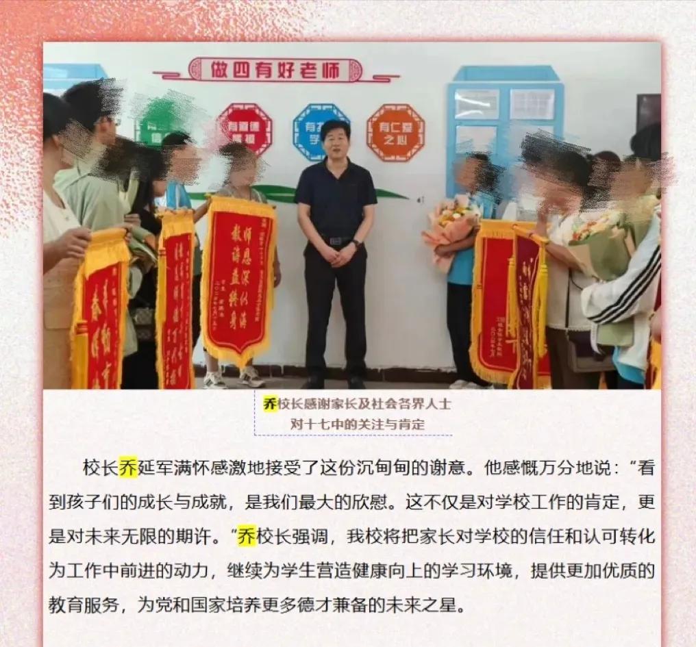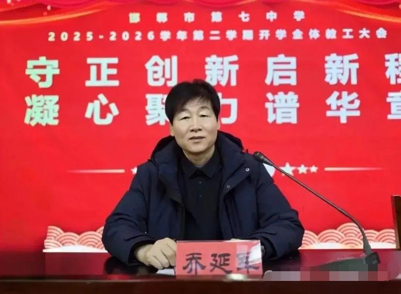 真是讽刺!这就是邯郸某中学校长乔延军,他端坐在讲台上大讲特讲,后面“师德师风”几个大字格外刺眼… 他一身白衬衣,胸前的徽章闪闪发光,后面写着“教育家精神铸魂强师行动”,师德师风专题会议。 他应该讲的是师德师风方面的内容,就是没想到,讲台上人模人样的教导别人,背地里却做出那样的事儿来,真是人前一套背后一套,啪啪打脸啊。 其身正 不令而行,身不正,虽令不行。作为学校一把手,理应以身作则,率先垂范,用实际行动干事创业,没想到做出这样的龌龊行为,真是有辱 师者称号… 看着年纪也不小了,却把那双脏手伸向15岁学生,真是为老不尊,德不配位!做出这样的事儿,他对得起胸前的徽章么?对得起脖子上的绶带么?对得起家长的信任和学生的热爱么?对得起“师德师风”这四个大字么?