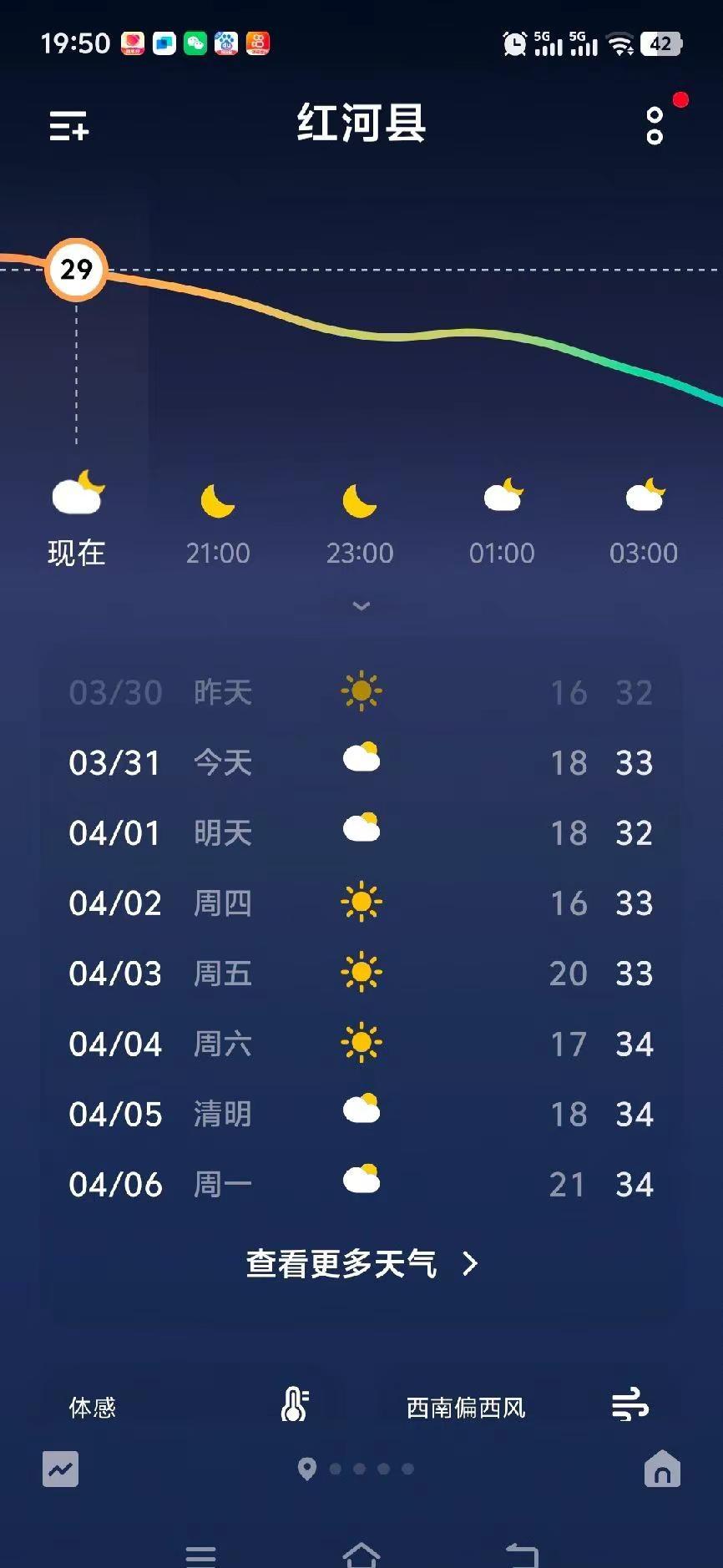 早上在昆明说好的四季如春10度,下午来到红河就变成夏天33度,晚上有所回暖29度