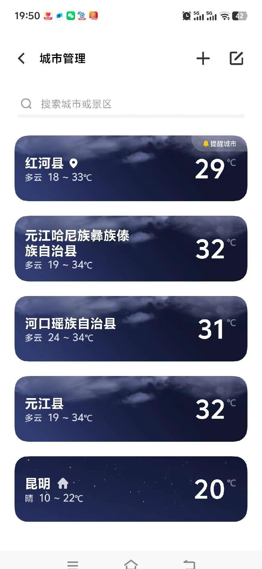 早上在昆明说好的四季如春10度,下午来到红河就变成夏天33度,晚上有所回暖29度,我只是一天就过了春夏秋冬吗?