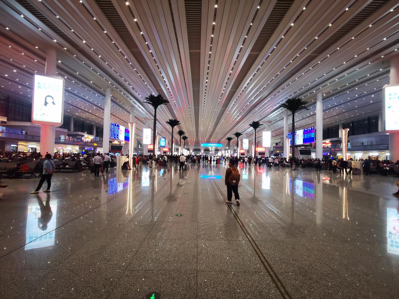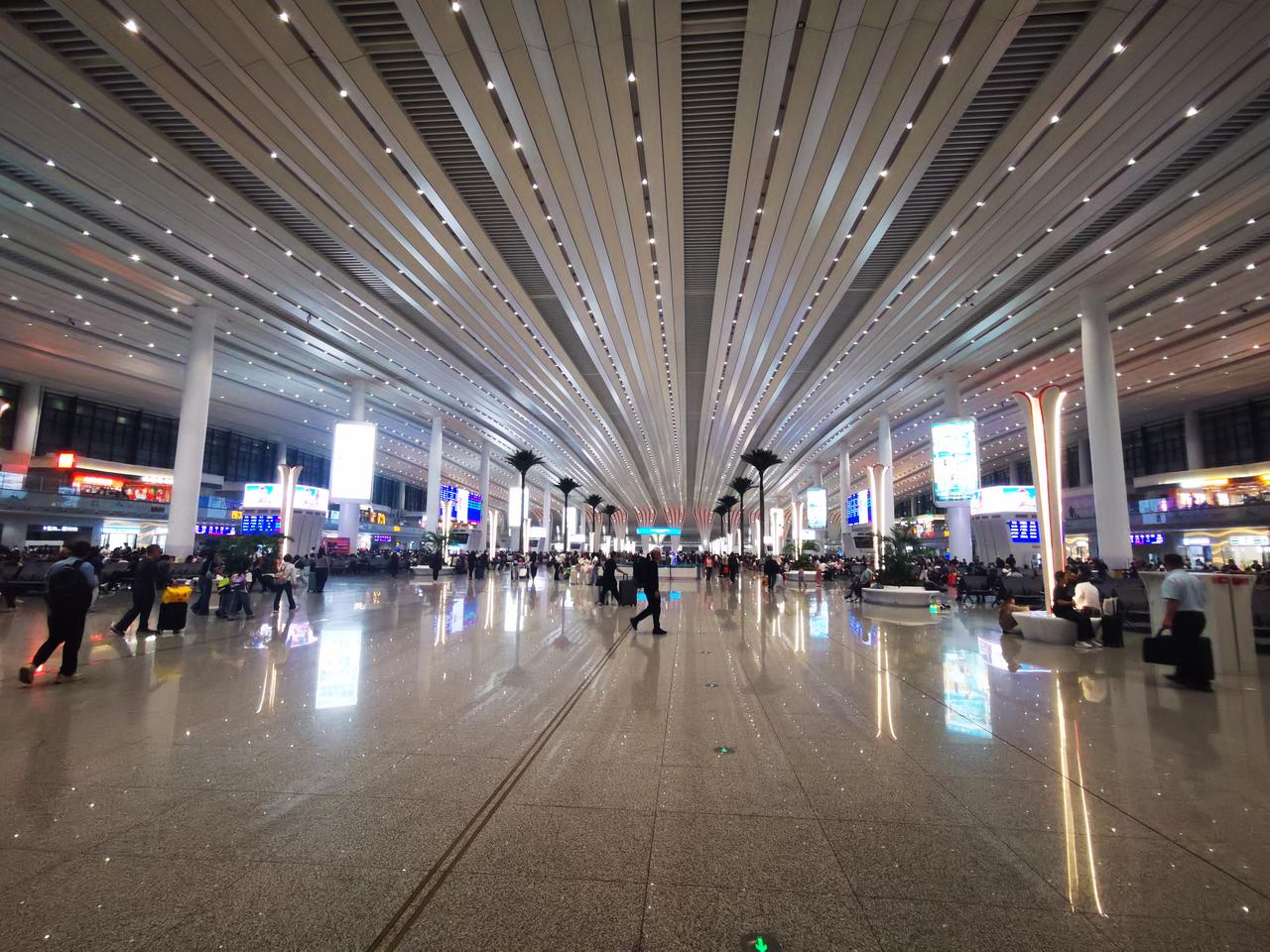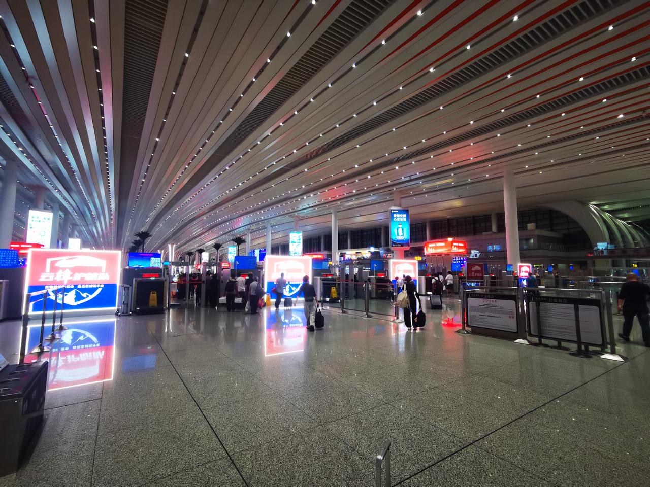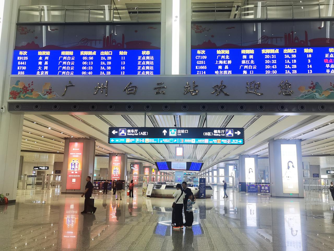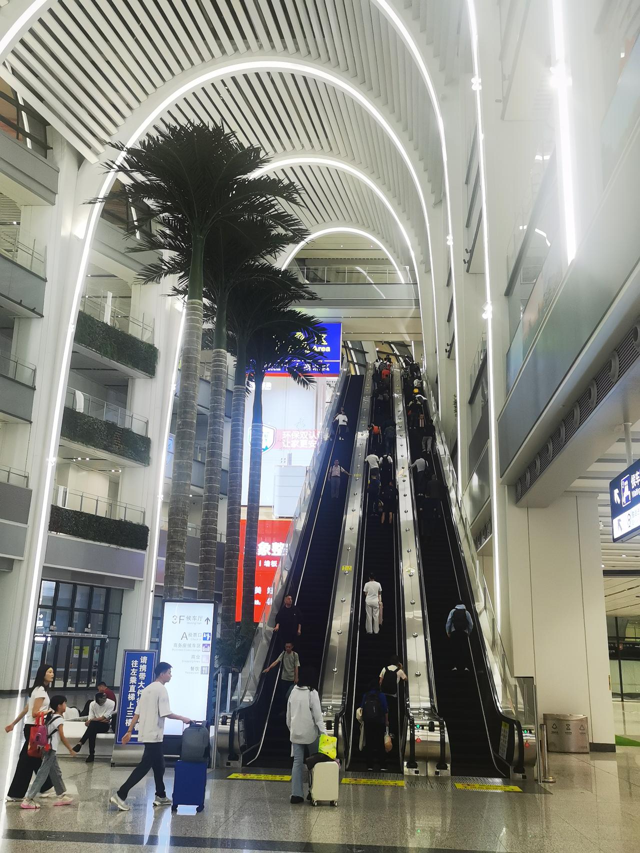 你见过亚洲第一大火车站的模样吗? 从地铁八号线石潭站出来,便踏入广州白云火车站的地界。从地铁站出站口到火车站,估摸有两公里左右的路程。这一路的建筑极为宽敞明亮,沿途至少设有6个百米长的自动扶梯。还未踏入白云站,便能真切感受到它的“高档宏大”。 出了地铁站连廊,不过50米,就可进入广州白云火车站。 迈入火车站,第一感觉便是富丽堂皇,空间极为宽敞高大。安检机一字排开,不见乘客排长队过安检的景象,显得十分宽松。走进候车大厅,更觉宽敞明亮、高大开阔。 整个火车站确实又美又大,我只拍照十几张,大致上也能感受欣赏一下,先睹为快。 我在百度上查阅了广州白云站的资料。 白云站占地面积达263万平方米,站房建筑面积为45万平方米,设计有11个站台、24条车道。其整体占地面积相当于4个广州南站。 广州南站本就是全国大型火车站之一,白云站有4个广州南站那么大,称其为亚洲第一大火车站,自然是实至名归了吧。