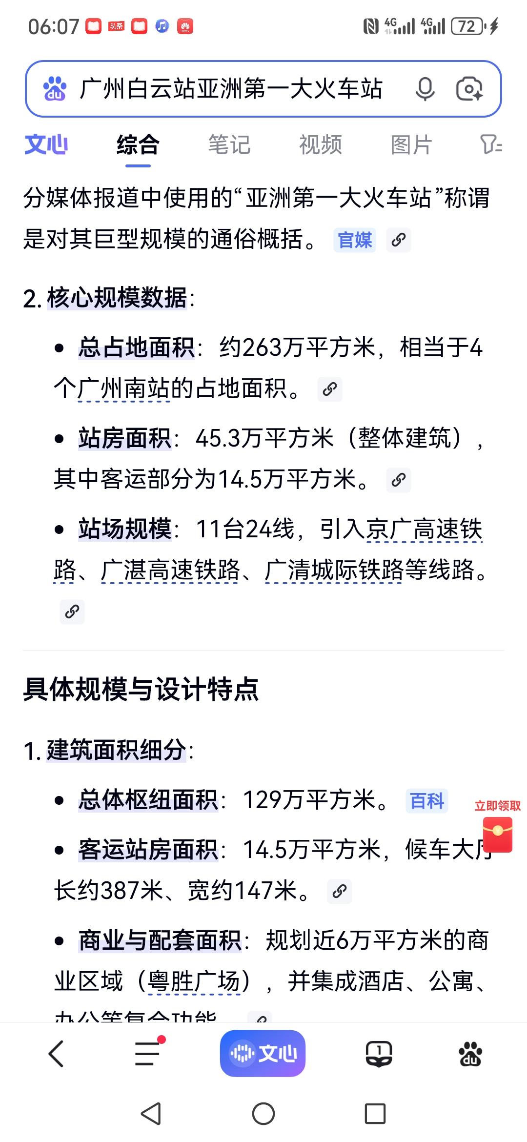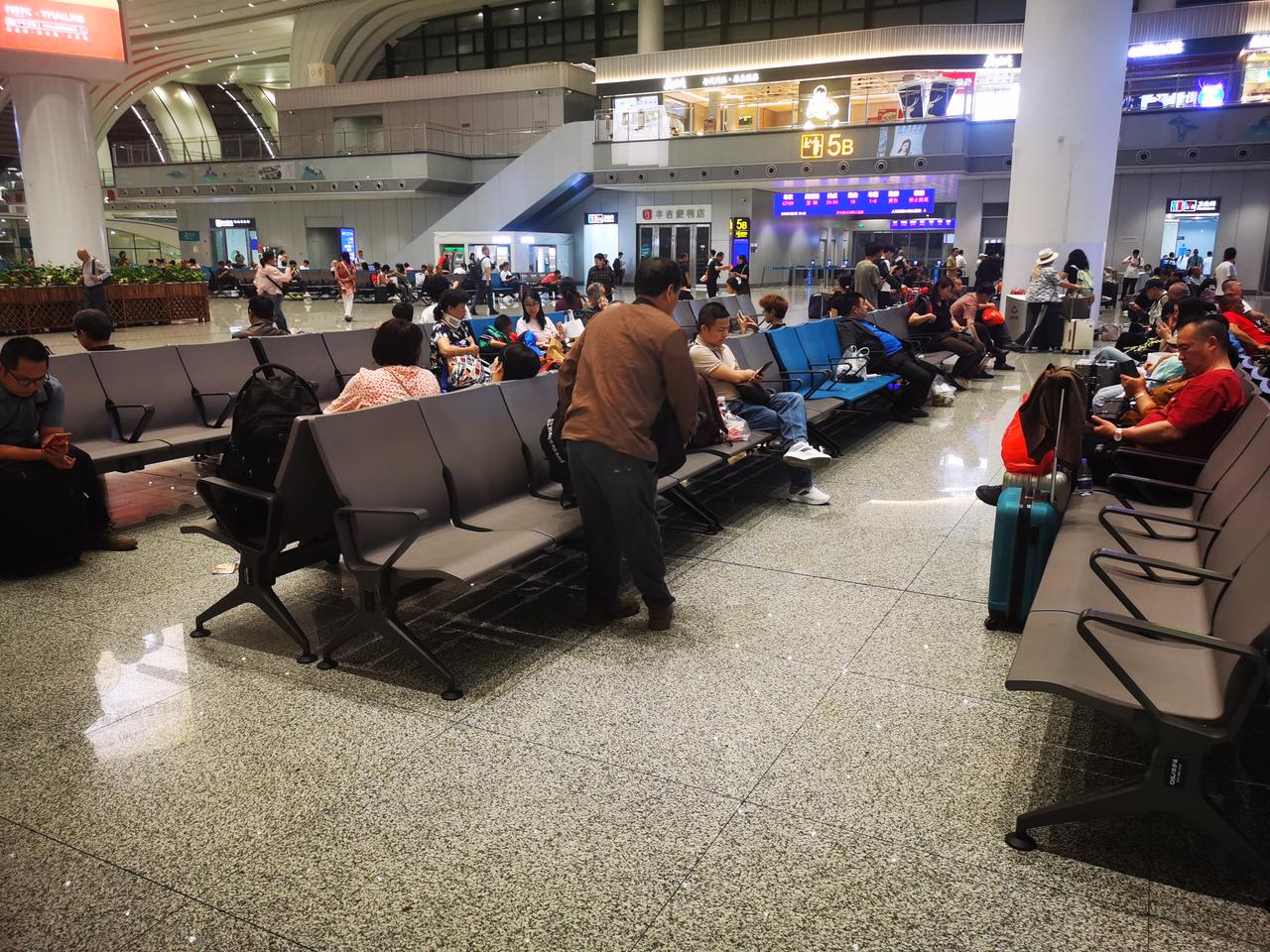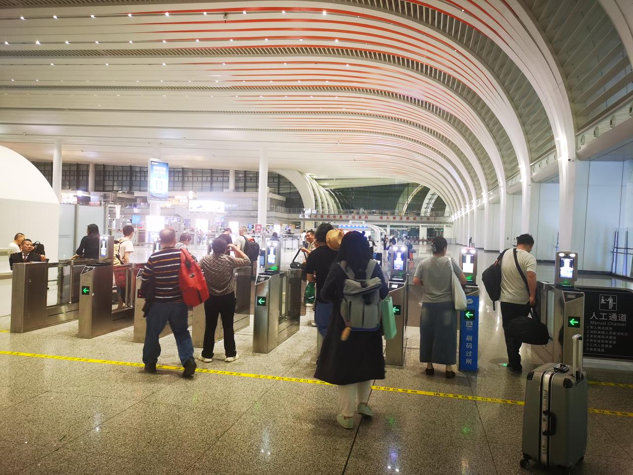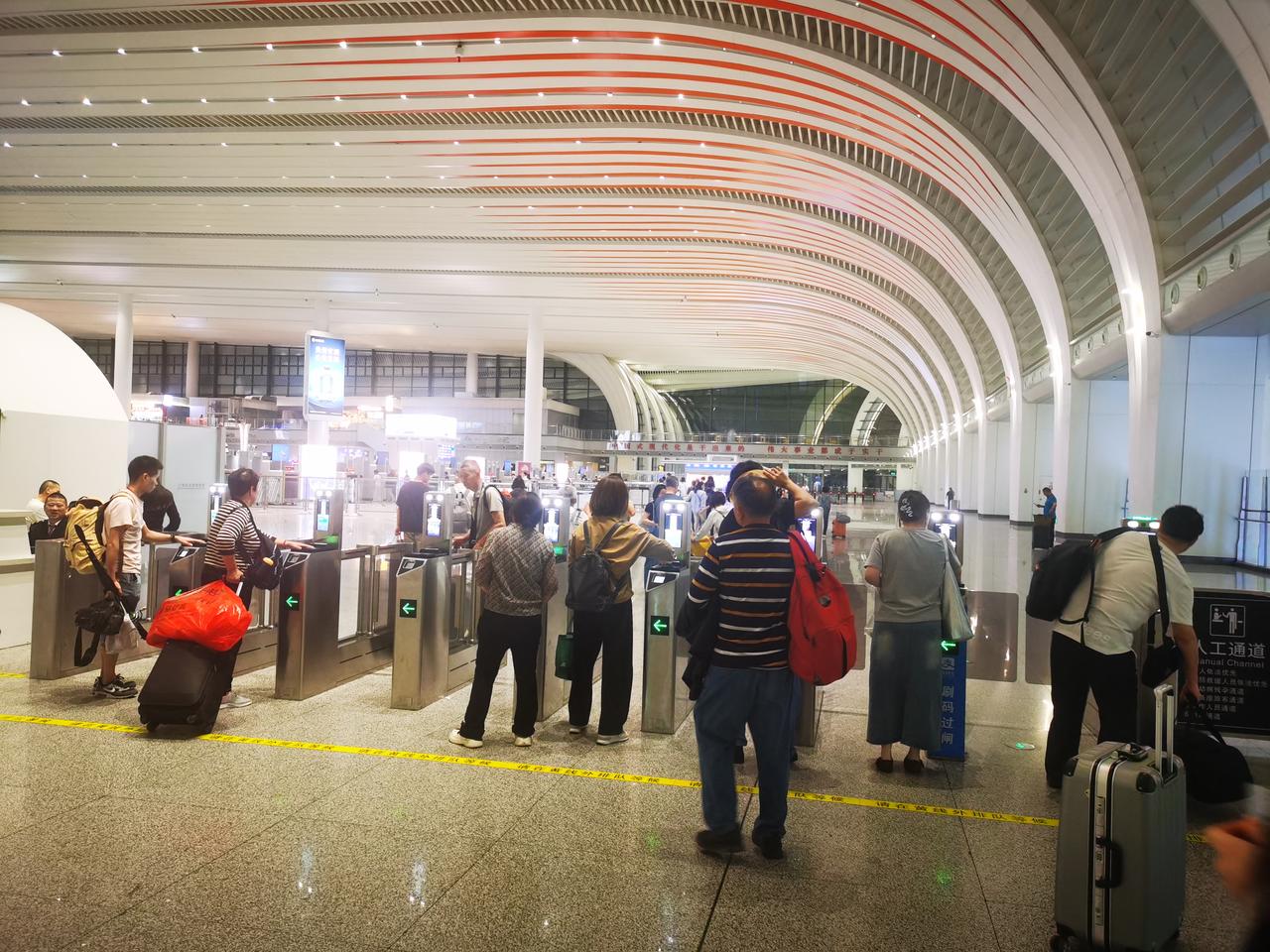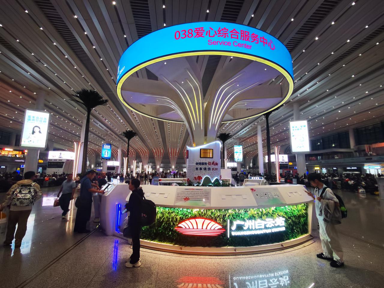 你见过亚洲第一大火车站的模样吗? 从地铁八号线石潭站出来,便踏入广州白云火车站的地界。从地铁站出站口到火车站,估摸有两公里左右的路程。这一路的建筑极为宽敞明亮,沿途至少设有6个百米长的自动扶梯。还未踏入白云站,便能真切感受到它的“高档宏大”。 出了地铁站连廊,不过50米,就可进入广州白云火车站。 迈入火车站,第一感觉便是富丽堂皇,空间极为宽敞高大。安检机一字排开,不见乘客排长队过安检的景象,显得十分宽松。走进候车大厅,更觉宽敞明亮、高大开阔。 整个火车站确实又美又大,我只拍照十几张,大致上也能感受欣赏一下,先睹为快。 我在百度上查阅了广州白云站的资料。 白云站占地面积达263万平方米,站房建筑面积为45万平方米,设计有11个站台、24条车道。其整体占地面积相当于4个广州南站。 广州南站本就是全国大型火车站之一,白云站有4个广州南站那么大,称其为亚洲第一大火车站,自然是实至名归了吧。