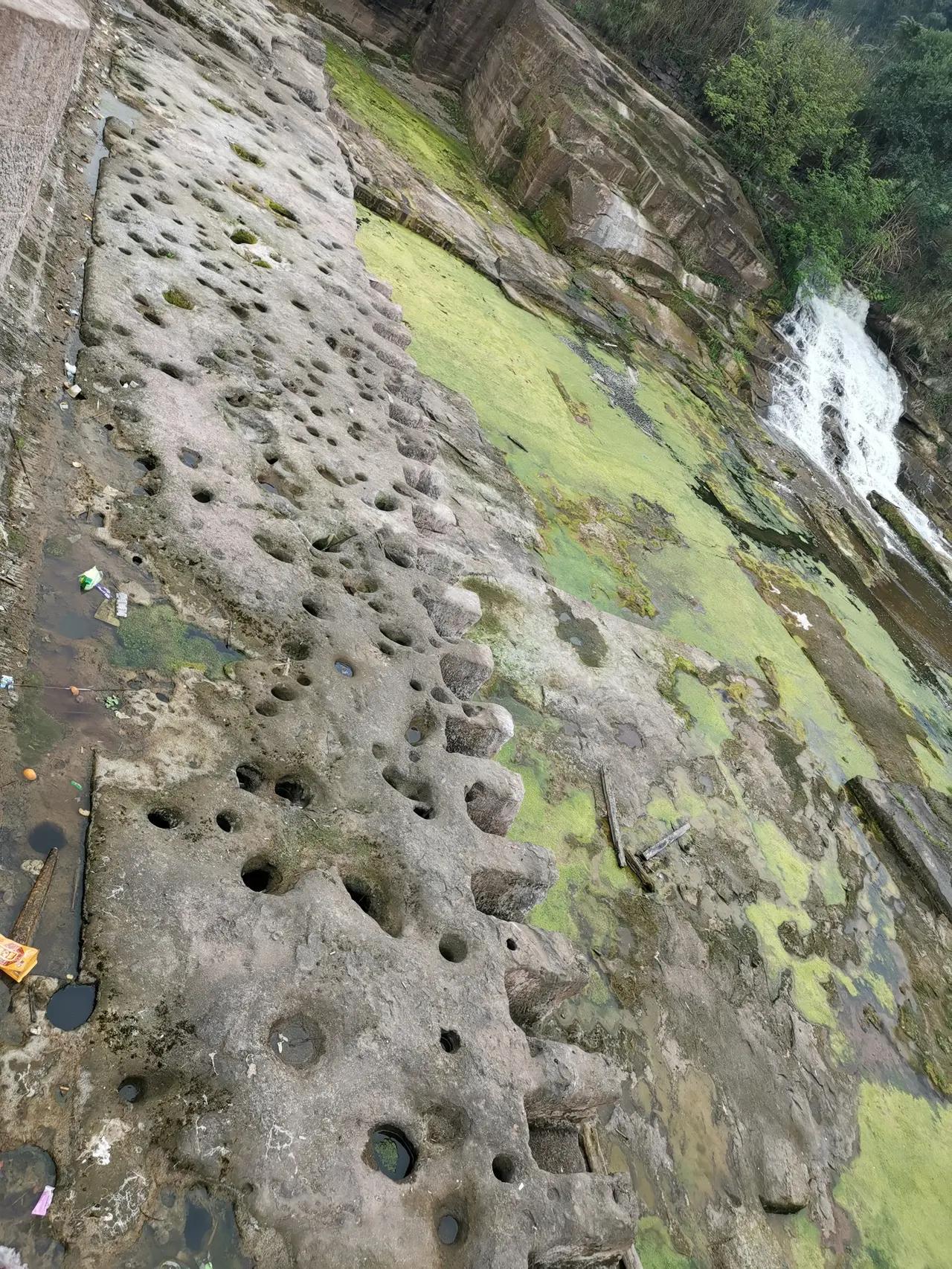 春风万里百总争艳,从607所过龙骨冲,就来到从高桥流下来的水就来到陡坎这个高山环抱,形成的小型瀑布。 这里只有个堰,没有桥,瀑布缓缓流淌,堰下的原生态河底上留下了亿万年前冰窖,麻麻密密,大小不一,各有千秋,上方300米成渝铁几分钟就有一趟经过,长江森林公园就在右上方。 中午我们5个人,坐一小圆桌,60元/人吃喝玩乐耍一天。 我们这桌菜有11道大菜,鸡,鸭,牛,猪,鱼均有,份量还行,还有凉粉,滑肉,色香味美,大餐馆也好不到哪去。 下午打麻将,还有去唱了几首歌 真的耍得太“安逸”了