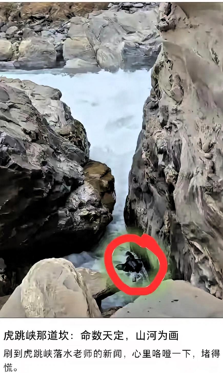 水杯不应该大于生命! 虎跳峡落水男子错就错在,他不应该站在“发疯石”上去洗杯子。