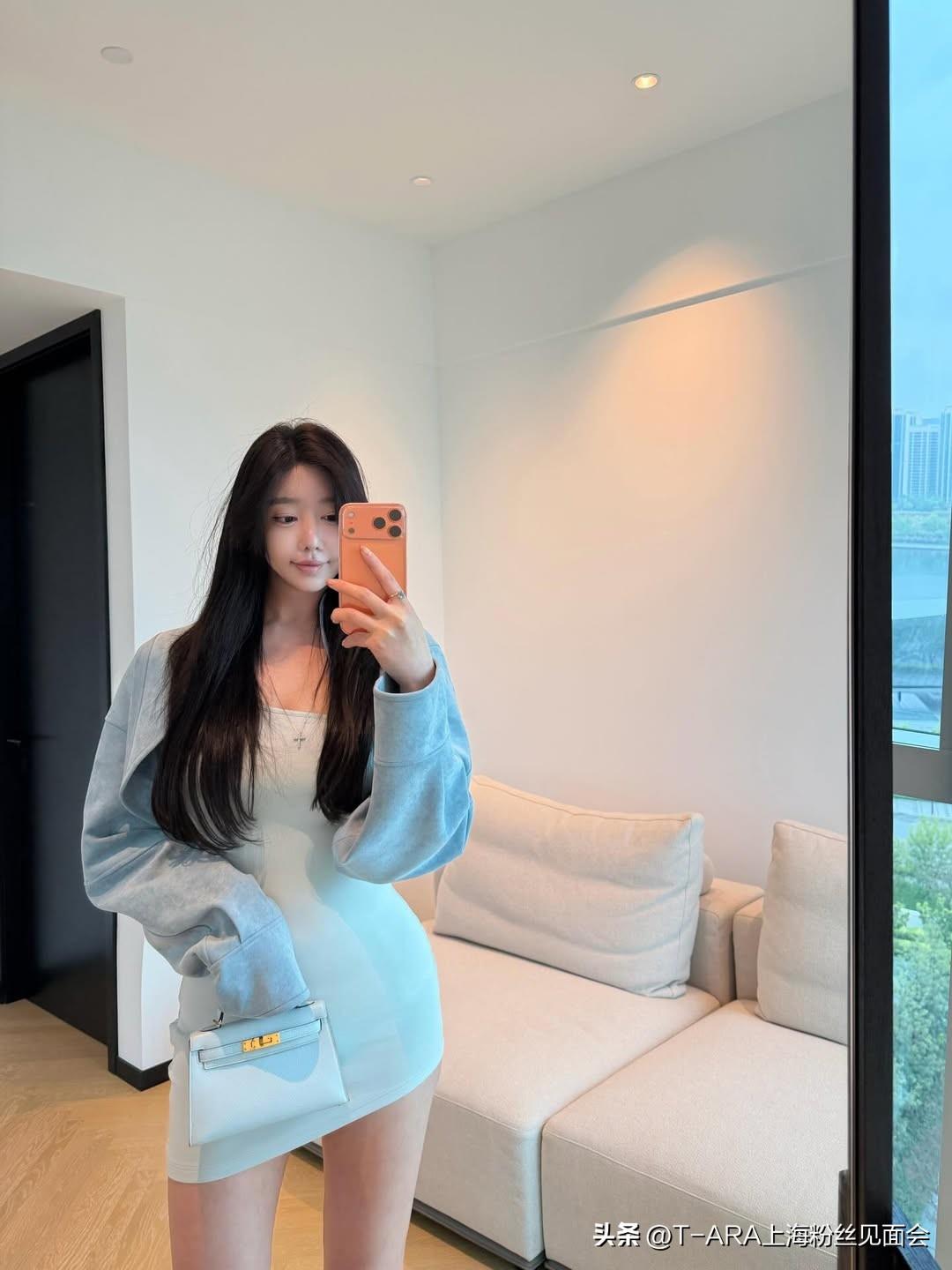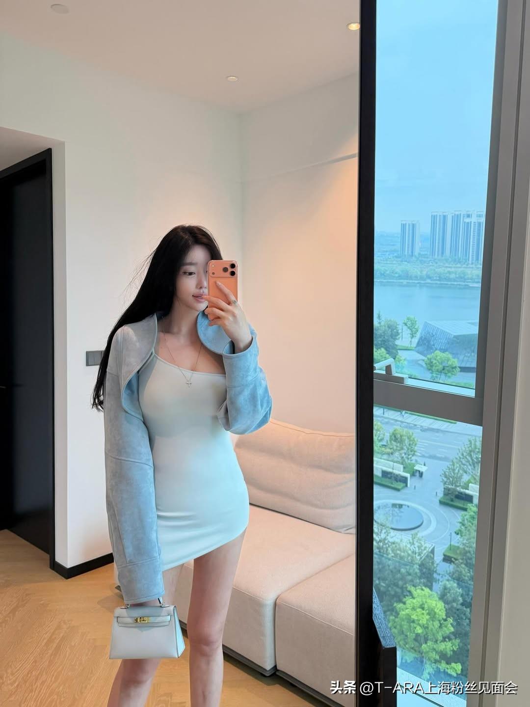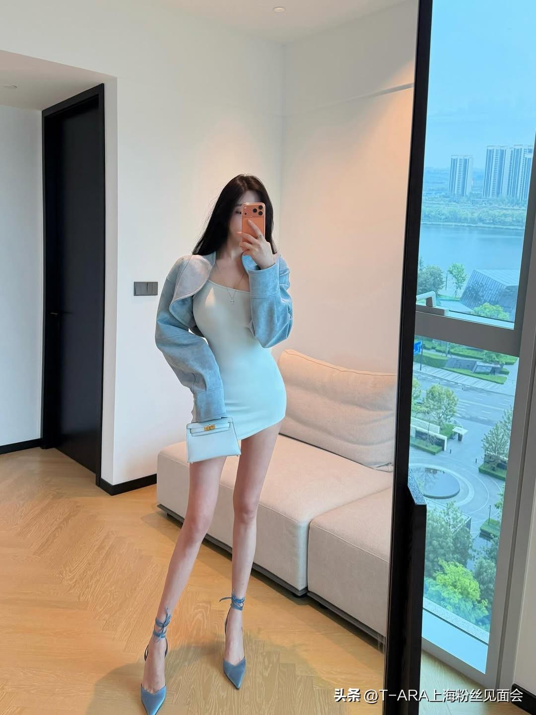 清爽蓝调,都市少女风OOTD 自拍 极品美女穿搭
