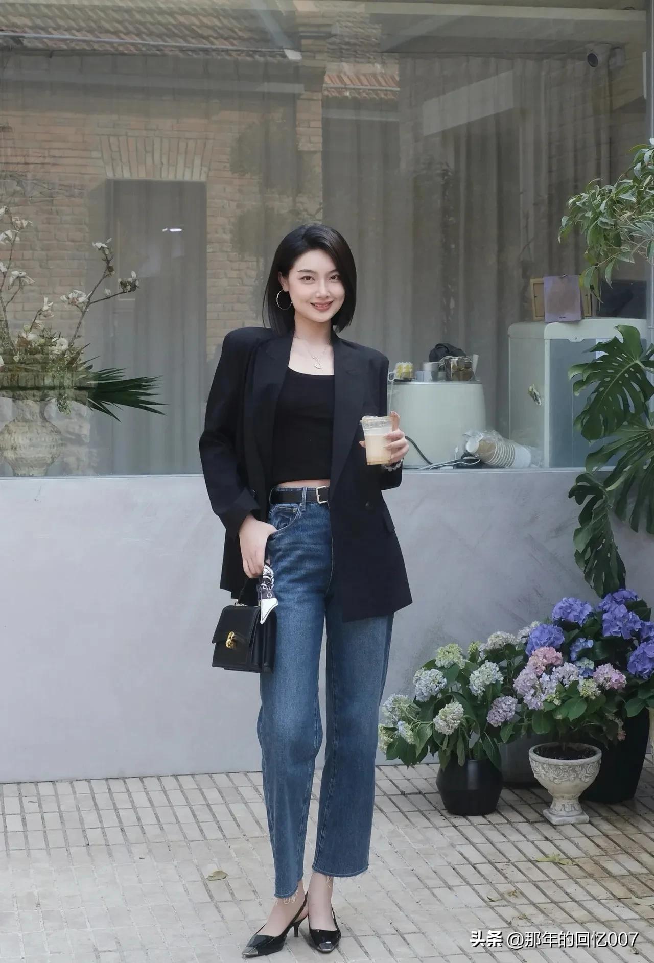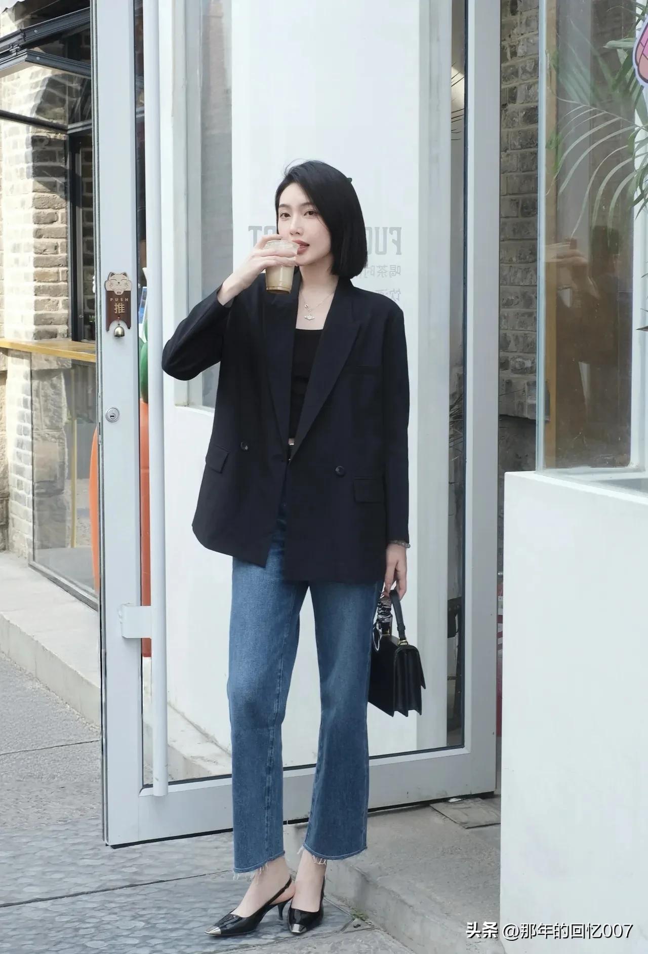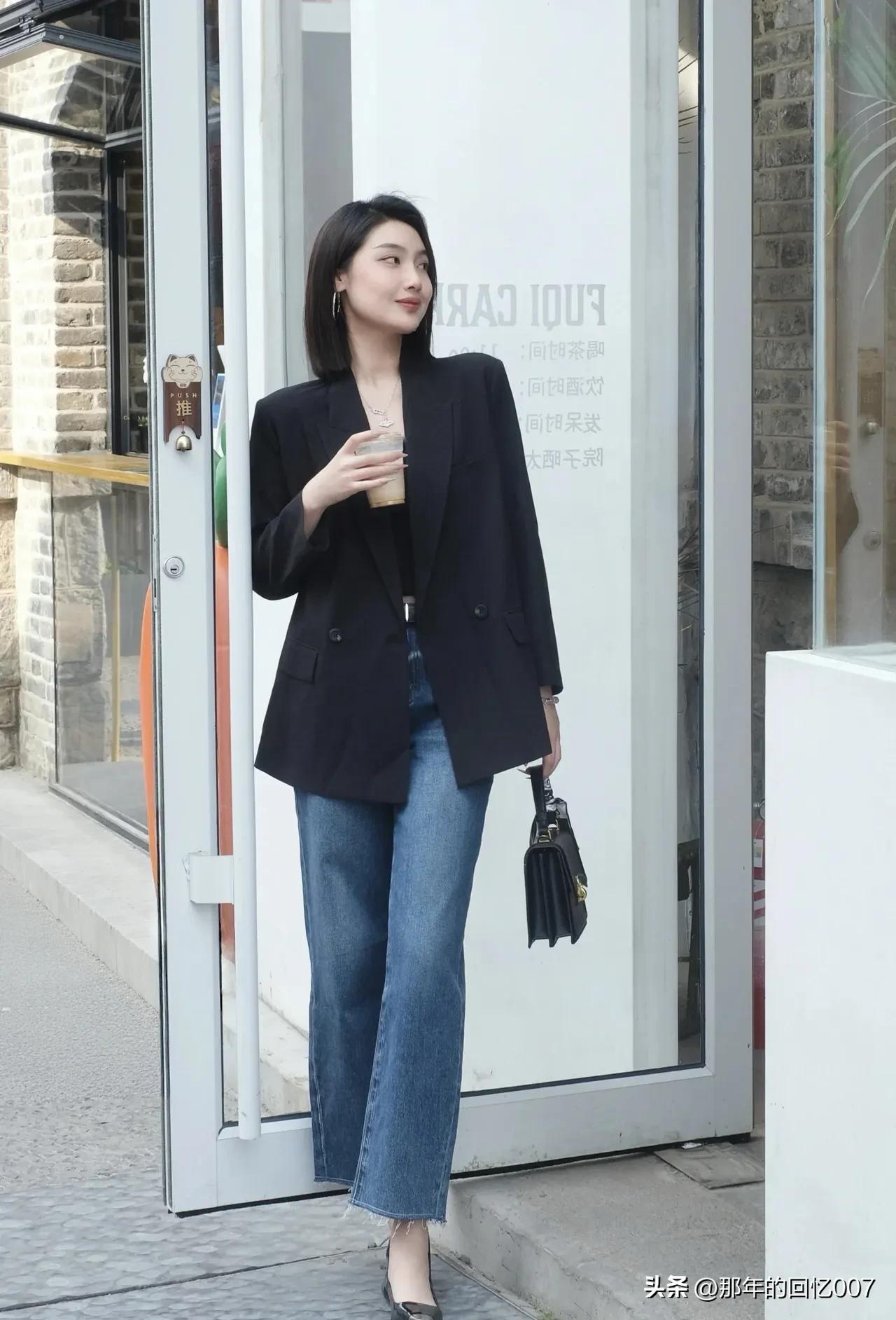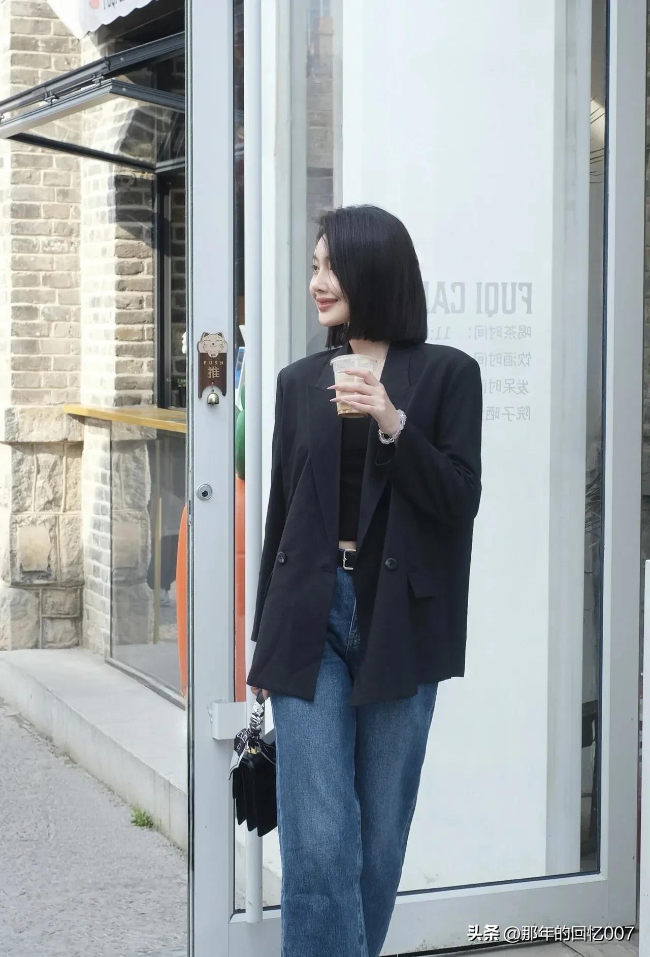 都市雅痞风穿搭真的太绝了!黑色西装外套搭配牛仔裤,这组合堪称经典。 黑色西装自带一种沉稳与神秘,穿上它瞬间气场提升。牛仔裤则充满随性,中和了西装的严肃感。想象一下,漫步在都市街头,身着这样的搭配,妥妥的时尚弄潮儿。 再加上手拿一杯咖啡,氛围感直接拉满。咖啡就像是点缀,为整体造型增添了一份优雅与惬意。无论是去上班,还是和朋友聚会,这身穿搭都能让你轻松成为焦点,既时尚又休闲,简直爱了!