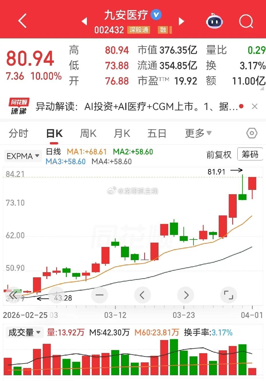 主线隐约可见,医药医疗板块众多个股纷纷走强,犹如一夜春风吹过,万物复苏,遍地花开