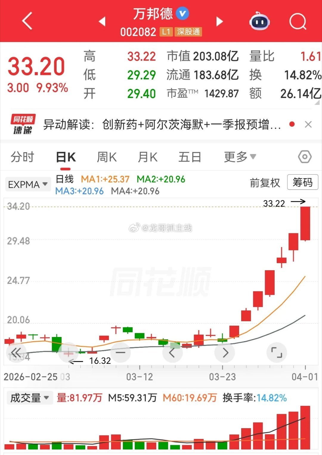 美诺华在经历两天回调后,若能企稳回升,也将起到鼓舞人心的作用。万邦德七天五板,已然取代美诺华成为板块的领头羊。