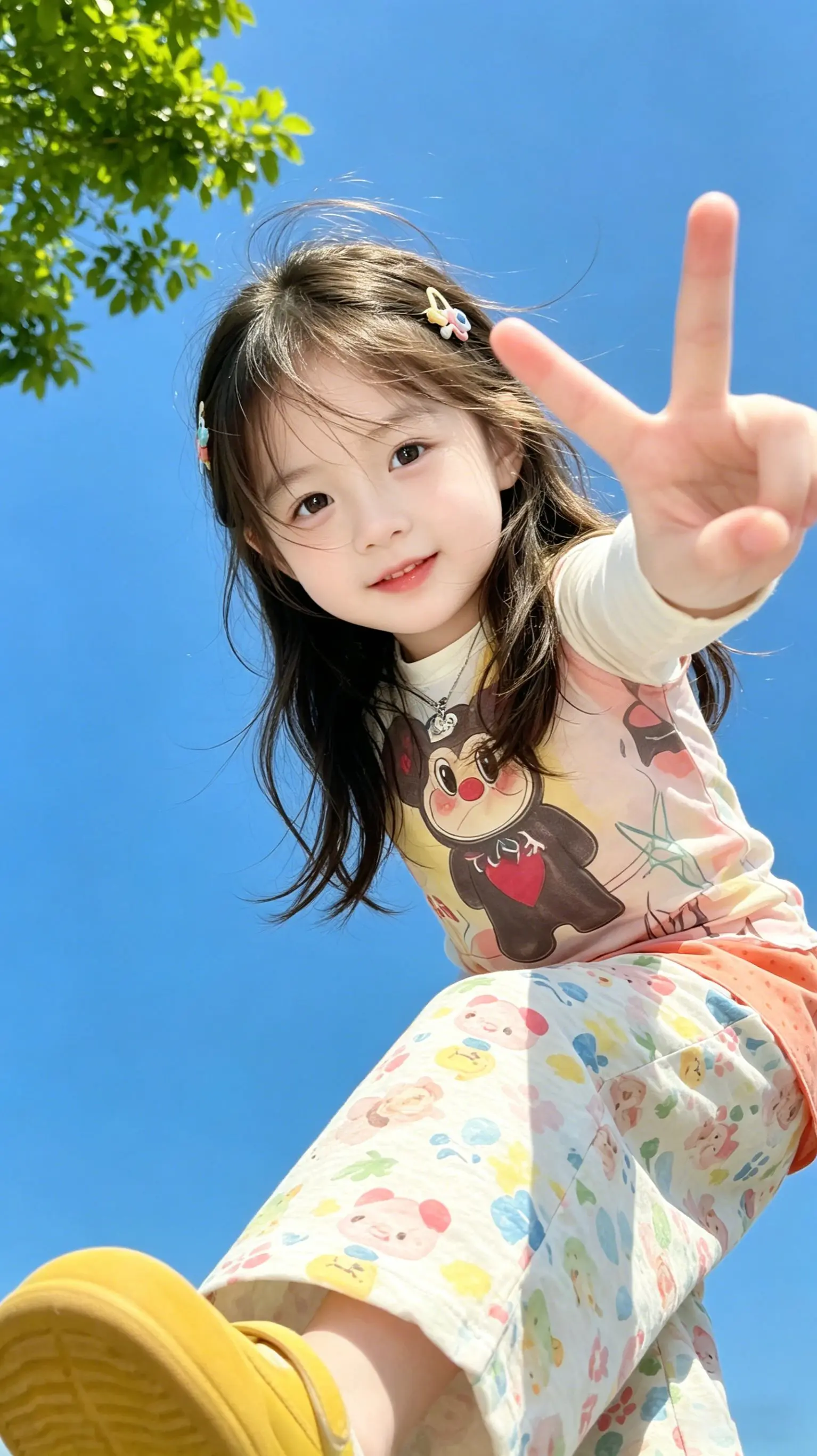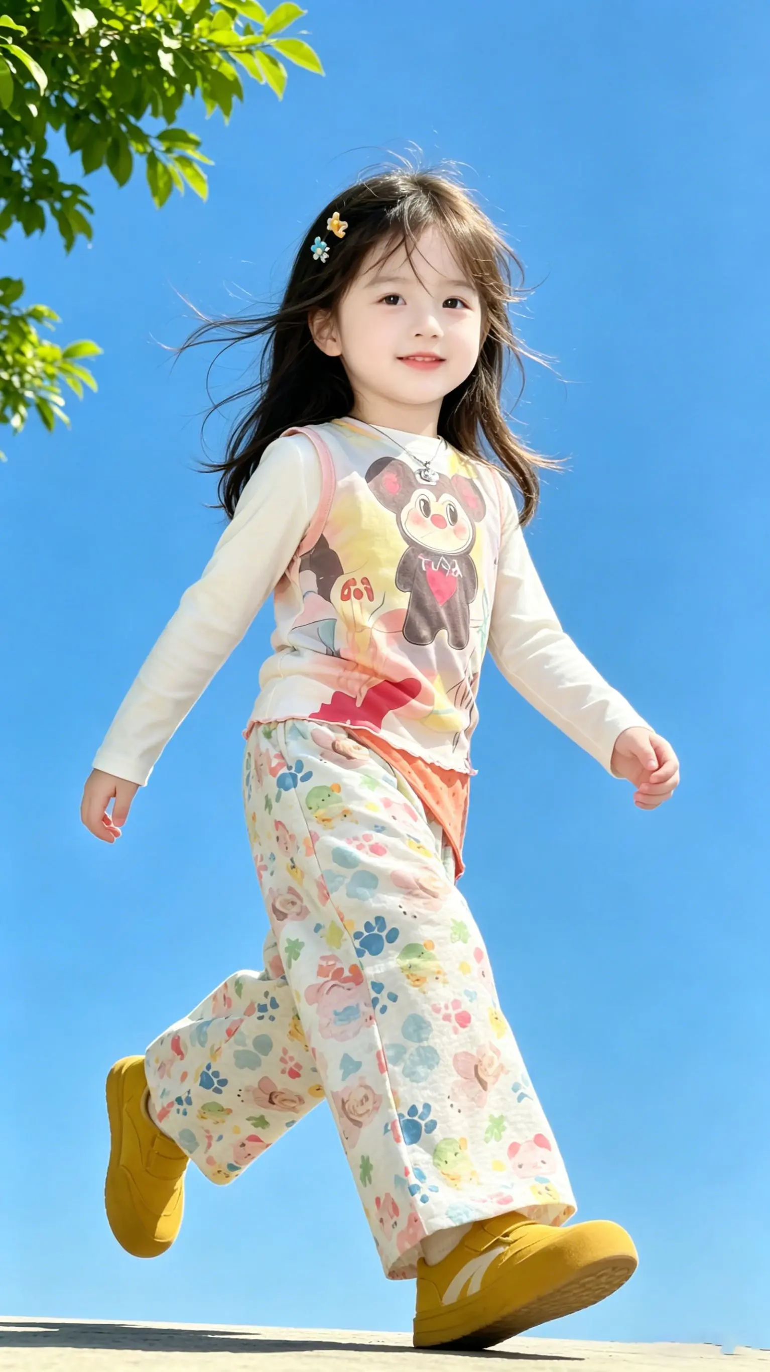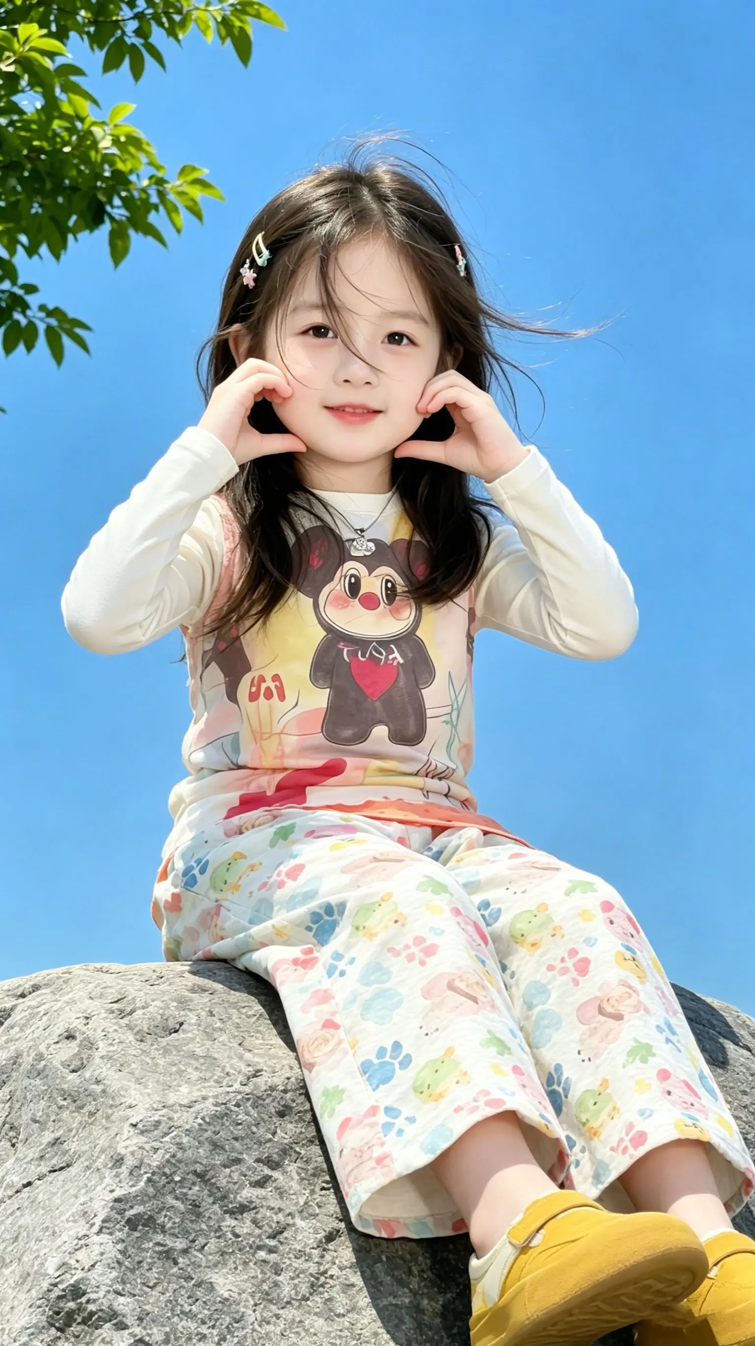 今日份OOTD,甜度超标💯。今日份治愈系穿搭分享~ 白底印花+清爽蓝调,真的太适合春夏了! 宽松的版型不束缚好动的宝宝,奔跑玩耍毫无压力,是妈妈放心的高颜值选择👍
