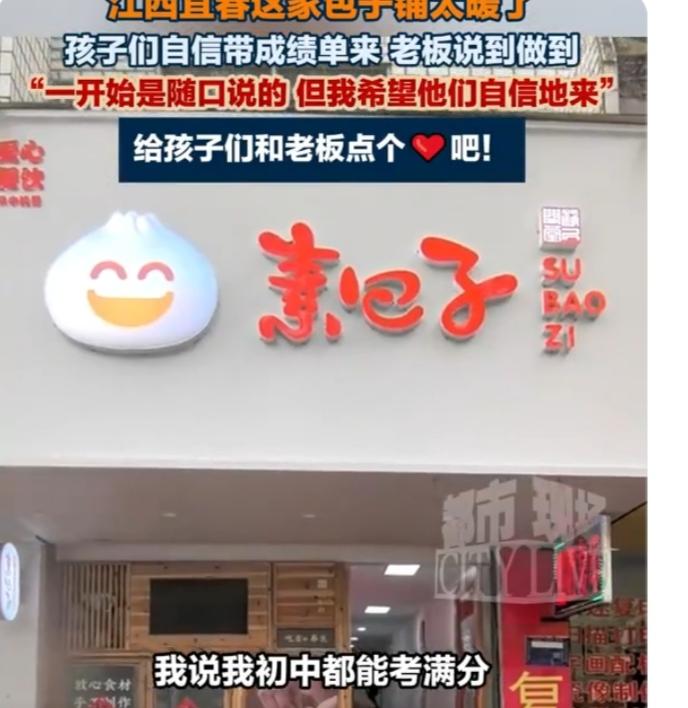 一句玩笑话,一群少年赴约,老板的举动看哭全网:这才是人间最暖的烟火气 太有创意了!江西宜春,一包子店老板跟店里吃饭的学生开玩笑:“只要考的好,可以直接免单。”本以为只是随口一说,没想到真有学生拿着成绩单找上门,结果店主不但没拒绝,还高兴的合不拢嘴,指着店里的东西,让孩子们随便选! 谁能想到,一句随口的鼓励,竟被一群孩子认认真真放在了心上。想必这些学生,每天背着书包走进包子店,闻着热腾腾的面香,心里都悄悄埋下了努力的种子。他们挑灯夜读,认真刷题,不只是为了成绩单上的分数,更是为了兑现和老板的那个“小约定”。 而老板的反应,才是最戳人的地方。没有推脱,没有反悔,反倒比孩子还要开心,眉眼间的笑意藏都藏不住。他免的不是一顿饭钱,而是对少年努力的认可,是对青涩梦想的呵护。在这个快节奏的时代,太多人把承诺当儿戏,随口的话转头就忘,可这位老板,用最朴实的举动,守住了孩子心里的真诚与期待。 这小小的包子店,装的不只是鲜香的包子,更是人间最纯粹的善意。孩子用努力赴约,老板用真诚回应,双向奔赴的美好,远比任何刻意的煽情都动人。 网友纷纷评论:“老板格局太大,这波免单太值了”“小时候要是有这样的老板,我肯定更爱学习”,其实我们感动的,从来不是一顿免费的早餐,而是这份不被辜负的童心,和藏在市井里的温柔。 生活本就平凡,可正是这些不经意的小善意,拼凑成了最温暖的人间。愿每一份努力都被看见,每一句承诺都被守护,这才是最该火遍全网的正能量!何为真正的善意 平凡人善意
