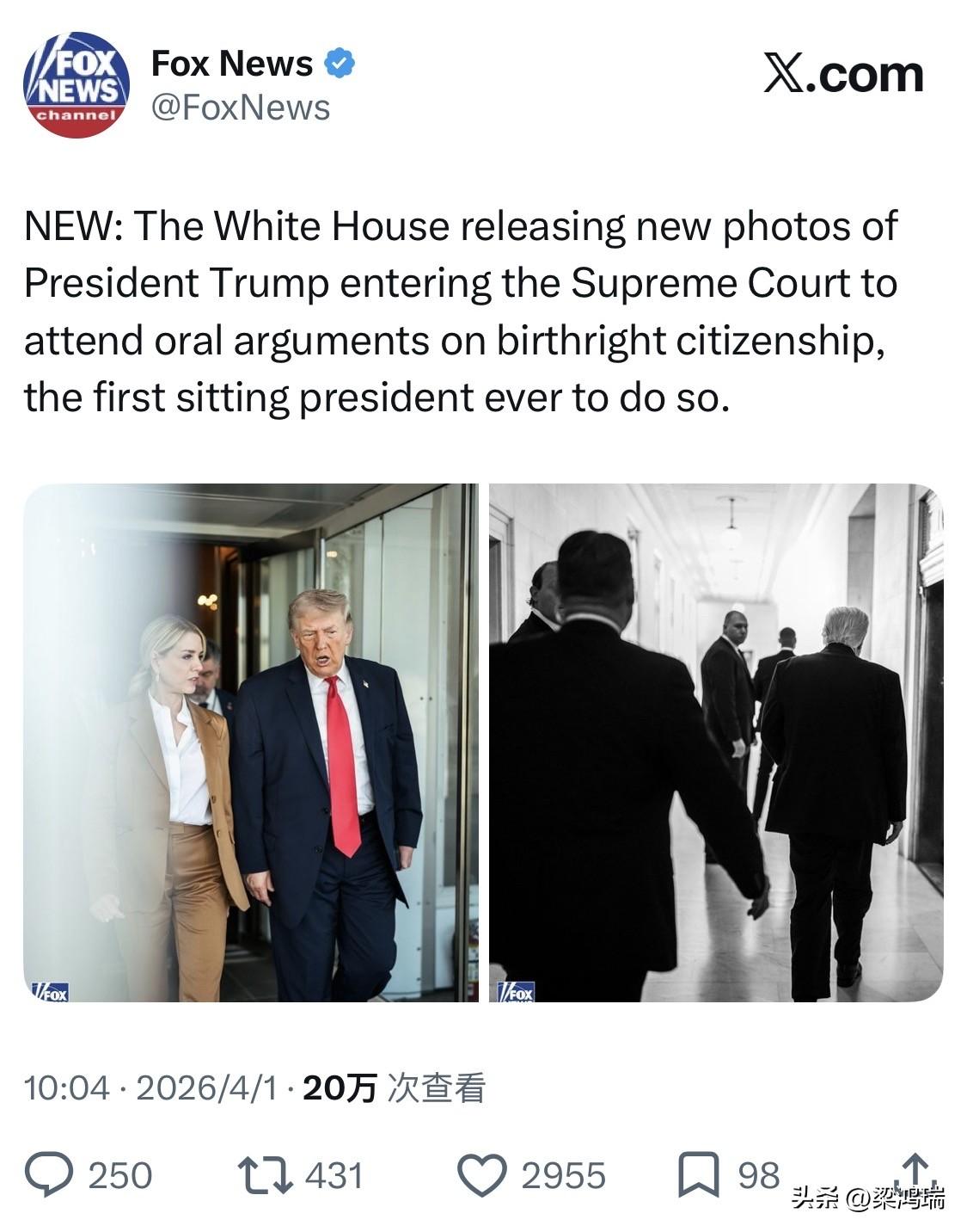 最新消息:白宫发布了特朗普总统进入最高法院旁听关于出生公民权的口头辩论的新照片,