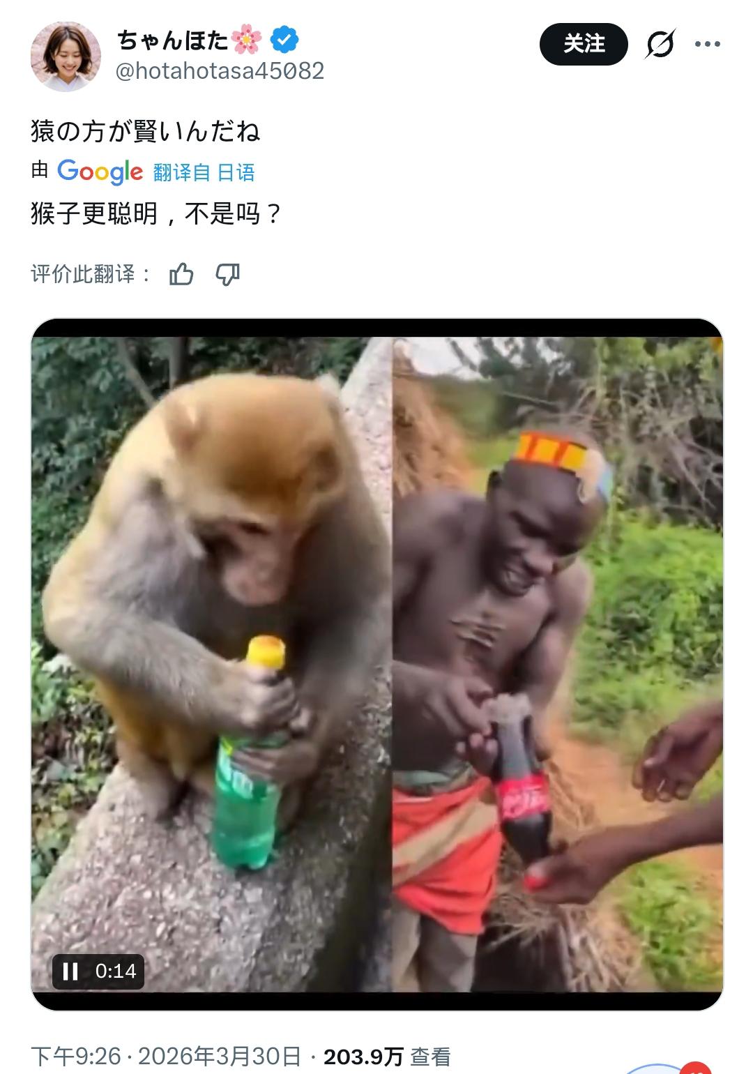 让世界看到日本! 自从马斯克打开信息茧房后, 全世界都看到了日本。 全世界开始看到: 日本人并没有西方宣传的那么美好,文明 在日本人看来 全世界80亿人,除了西方10亿,剩余70亿,他们全都歧视,在他们眼里全是猴子。 当然,不是所有日本人都这样, 只是自“破壁”之后, 在社交平台上遇到这种人的频率 出奇的高 而你也很难不得出这样的结论: 日本就是一个“法西斯”国家! Source: X