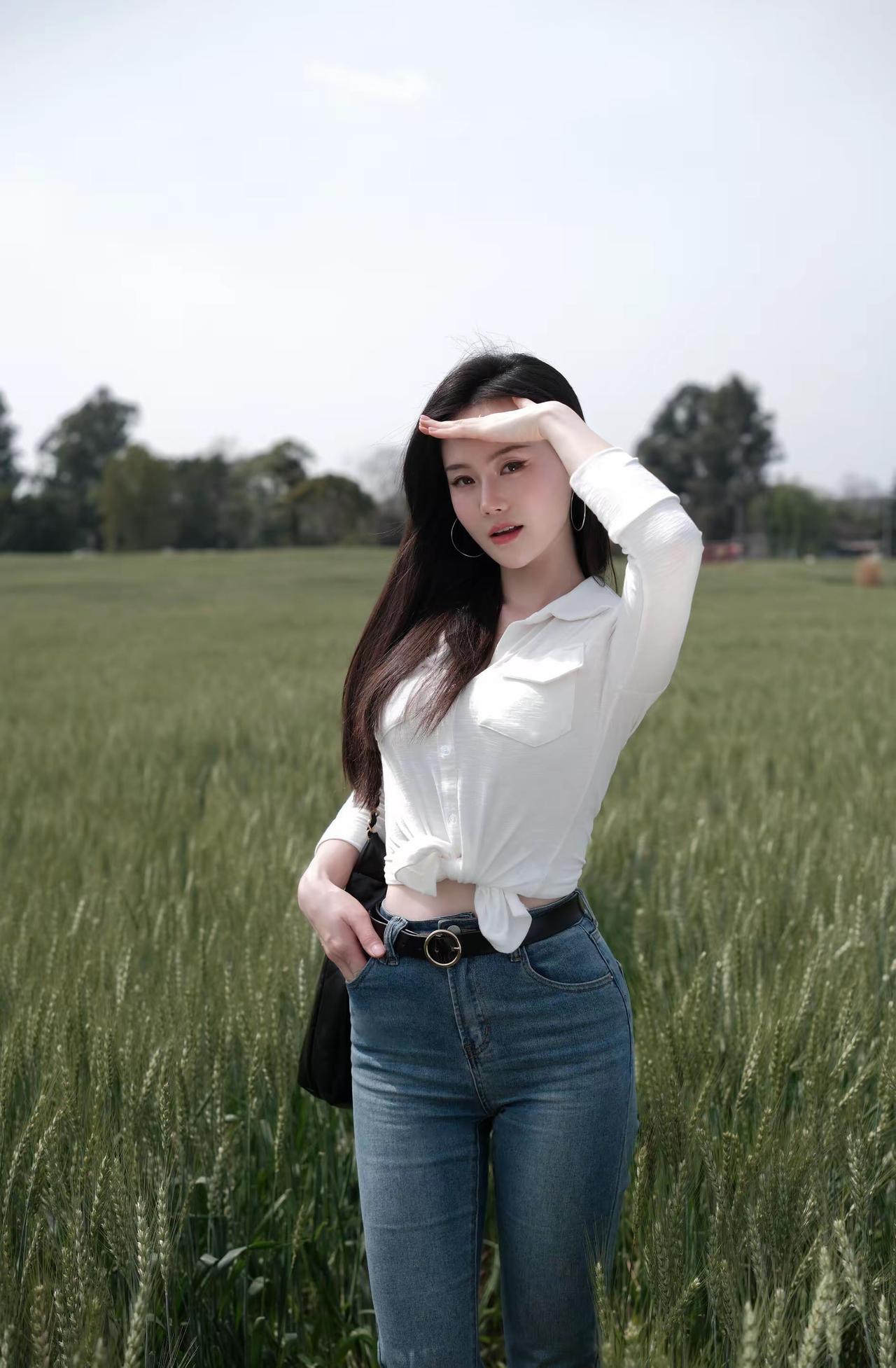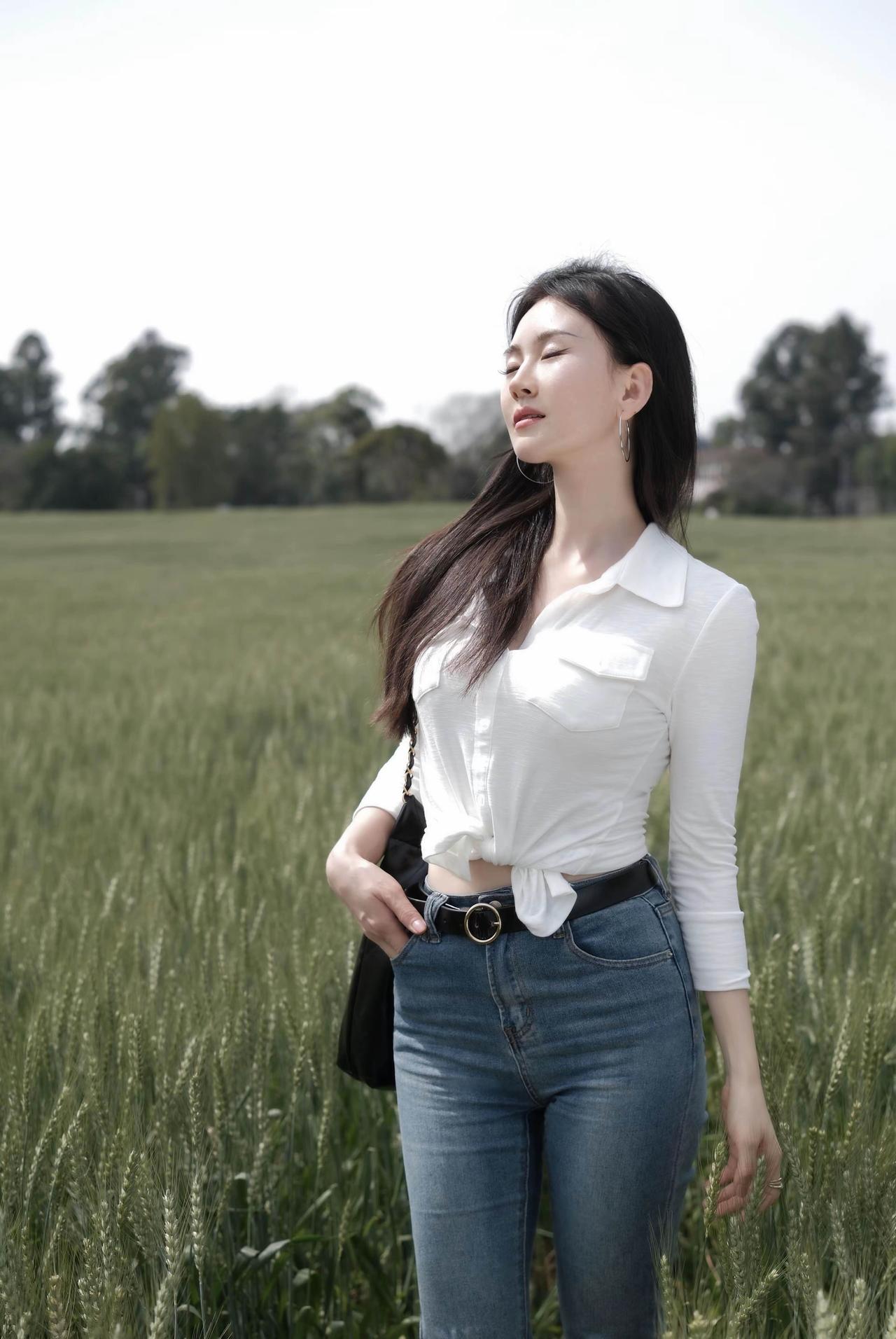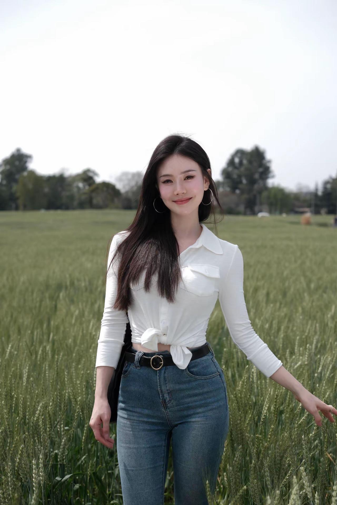 🌿 春日户外松弛感辣妹风穿搭 这套穿搭完美适配麦田踏青、郊野漫步、城市骑行、闺蜜出游等场景,以经典白+牛仔打造显高显瘦的松弛感造型,兼具美观与实用性,出片率拉满。 ✨ 核心单品解析 上衣系列 • 白色修身Polo领长袖衬衫 ◦ 坑条弹力面料贴合身形,勾勒身材曲线,Polo领设计修饰肩颈线条,下摆打结设计拉高腰线,打造“上短下长”黄金比例,辣妹感十足。 ◦ 白色纯净百搭,不挑肤色,自带春日清新感,长袖设计兼顾防晒,应对户外温差,单穿/叠穿都极具氛围感。 • 白色修身基础款长袖T恤 ◦ 简约基础款,修身版型勾勒曲线,可单穿可内搭,适配多种下装,是衣橱百搭神器,与牛仔裤形成经典白蓝撞色,松弛感拉满。 下装 • 浅蓝色高腰微喇牛仔裤 ◦ 高腰设计收紧腰线,视觉拉长腿部线条,微喇裤型修饰腿型,遮盖小腿肌肉,适配梨形/苹果形身材,裤脚微喇设计增添复古感。 ◦ 浅水洗蓝清新百搭,与白色上衣形成经典撞色,复古感拉满,适配多种穿搭场景。 配饰&鞋履 • 黑色菱格链条托特包:经典菱格设计,复古精致,容量充足,适合出游携带物品,黑色与白蓝穿搭形成撞色,视觉层次分明。 • 黑色金属扣皮带:金属扣设计点缀腰线,强化身材比例,提升造型精致感,弱化穿搭的休闲感。 • 金色尖头细跟鞋:尖头设计拉长腿部线条,细跟提升气质,金色与皮带扣形成呼应,是辣妹风的点睛之笔。 • 银色大圈耳环+戒指:简约精致,修饰脸型,提升造型精致感,不抢穿搭主色风头,强化辣妹气质。 🌟 风格亮点 1. 松弛感辣妹风拉满:修身白上衣+高腰微喇牛仔裤,性感与松弛平衡,打结设计增添细节感,打造不费力的时尚感。 2. 显高显瘦公式:短款上衣+高腰微喇裤+细跟鞋,三重拉高腰线,轻松打造三七分身材,视觉增高5cm+。 3. 场景兼容性强:一套穿搭适配郊野、城市、通勤等多种场景,实用性拉满,不挑身材不挑肤色。 4. 氛围感出片:白蓝经典配色,与麦田、郊野、城市街景完美融合,拍照自带清新滤镜,轻松成为朋友圈焦点。 💡 搭配延伸 • 更休闲:换白色老爹鞋+棒球帽,强化松弛感,打造街头辣妹风。 • 更通勤:换白色乐福鞋+腋下包,弱化休闲感,打造职场轻熟风。 • 更保暖:外搭牛仔外套/白色风衣,应对春日早晚温差,延续清新气质。 📸 场景适配 • 麦田/郊野踏青:与自然场景高度契合,轻松拍出氛围感大片。 • 城市漫步/骑行:舒适自在,适配日常出行,兼顾美观与实用性。 • 闺蜜出游:辣妹风格吸睛度拉满,轻松成为人群焦点。 牛仔裤 polo衫 轻熟 辣妹
