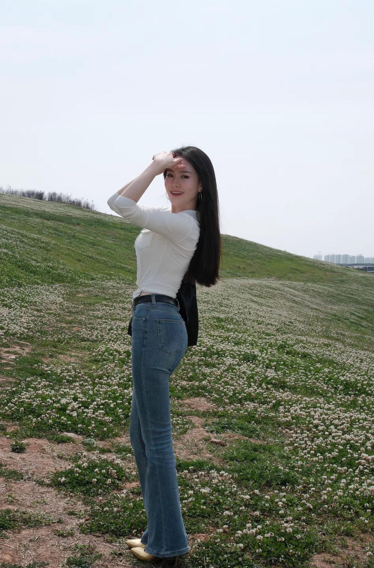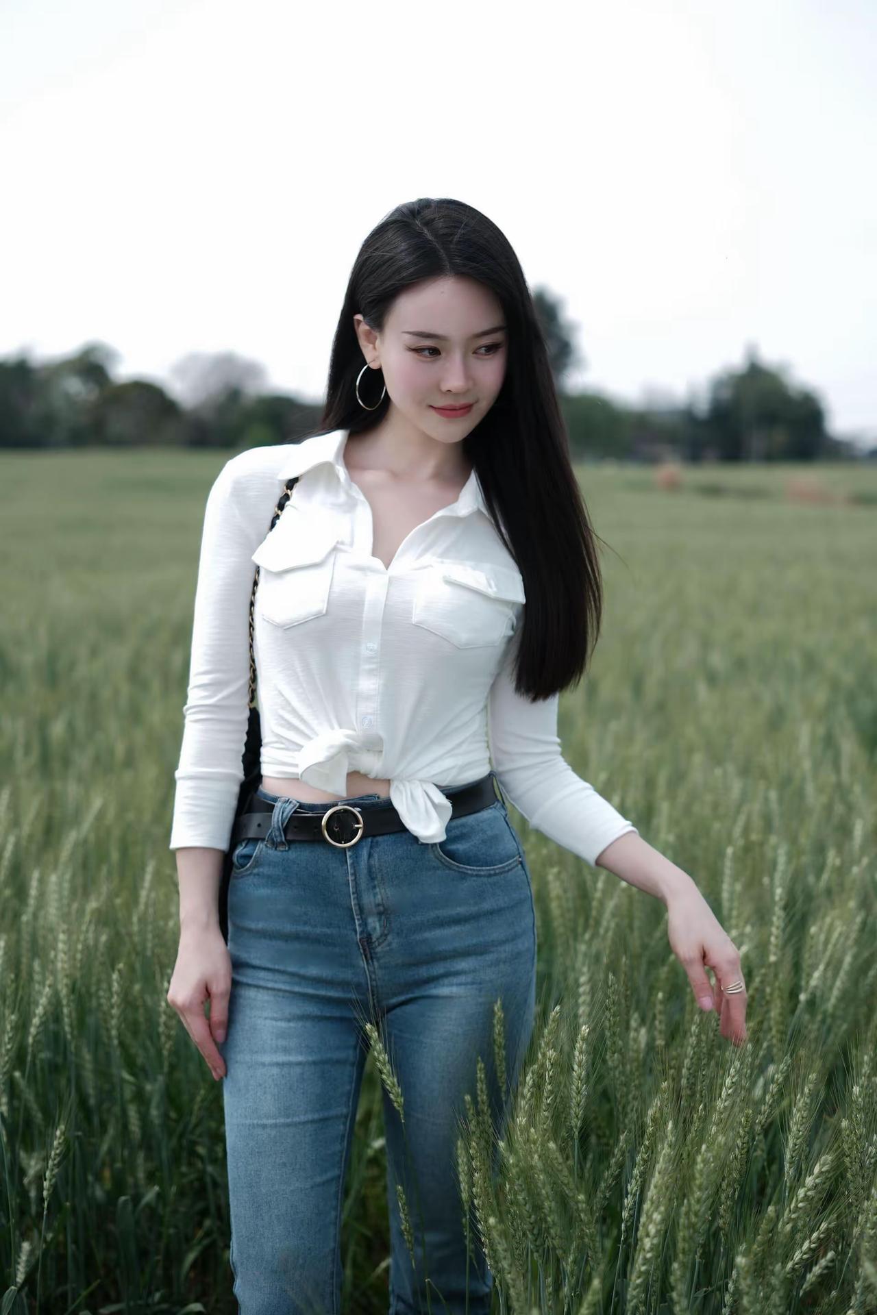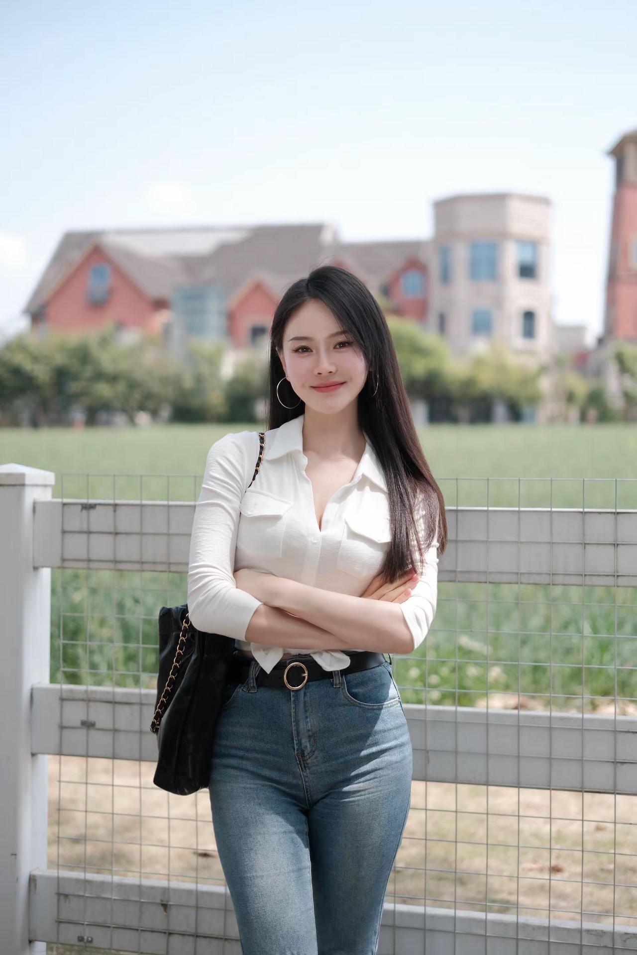 🌿 春日户外松弛感辣妹风穿搭 这套穿搭完美适配麦田踏青、郊野漫步、城市骑行、闺蜜出游等场景,以经典白+牛仔打造显高显瘦的松弛感造型,兼具美观与实用性,出片率拉满。 ✨ 核心单品解析 上衣系列 • 白色修身Polo领长袖衬衫 ◦ 坑条弹力面料贴合身形,勾勒身材曲线,Polo领设计修饰肩颈线条,下摆打结设计拉高腰线,打造“上短下长”黄金比例,辣妹感十足。 ◦ 白色纯净百搭,不挑肤色,自带春日清新感,长袖设计兼顾防晒,应对户外温差,单穿/叠穿都极具氛围感。 • 白色修身基础款长袖T恤 ◦ 简约基础款,修身版型勾勒曲线,可单穿可内搭,适配多种下装,是衣橱百搭神器,与牛仔裤形成经典白蓝撞色,松弛感拉满。 下装 • 浅蓝色高腰微喇牛仔裤 ◦ 高腰设计收紧腰线,视觉拉长腿部线条,微喇裤型修饰腿型,遮盖小腿肌肉,适配梨形/苹果形身材,裤脚微喇设计增添复古感。 ◦ 浅水洗蓝清新百搭,与白色上衣形成经典撞色,复古感拉满,适配多种穿搭场景。 配饰&鞋履 • 黑色菱格链条托特包:经典菱格设计,复古精致,容量充足,适合出游携带物品,黑色与白蓝穿搭形成撞色,视觉层次分明。 • 黑色金属扣皮带:金属扣设计点缀腰线,强化身材比例,提升造型精致感,弱化穿搭的休闲感。 • 金色尖头细跟鞋:尖头设计拉长腿部线条,细跟提升气质,金色与皮带扣形成呼应,是辣妹风的点睛之笔。 • 银色大圈耳环+戒指:简约精致,修饰脸型,提升造型精致感,不抢穿搭主色风头,强化辣妹气质。 🌟 风格亮点 1. 松弛感辣妹风拉满:修身白上衣+高腰微喇牛仔裤,性感与松弛平衡,打结设计增添细节感,打造不费力的时尚感。 2. 显高显瘦公式:短款上衣+高腰微喇裤+细跟鞋,三重拉高腰线,轻松打造三七分身材,视觉增高5cm+。 3. 场景兼容性强:一套穿搭适配郊野、城市、通勤等多种场景,实用性拉满,不挑身材不挑肤色。 4. 氛围感出片:白蓝经典配色,与麦田、郊野、城市街景完美融合,拍照自带清新滤镜,轻松成为朋友圈焦点。 💡 搭配延伸 • 更休闲:换白色老爹鞋+棒球帽,强化松弛感,打造街头辣妹风。 • 更通勤:换白色乐福鞋+腋下包,弱化休闲感,打造职场轻熟风。 • 更保暖:外搭牛仔外套/白色风衣,应对春日早晚温差,延续清新气质。 📸 场景适配 • 麦田/郊野踏青:与自然场景高度契合,轻松拍出氛围感大片。 • 城市漫步/骑行:舒适自在,适配日常出行,兼顾美观与实用性。 • 闺蜜出游:辣妹风格吸睛度拉满,轻松成为人群焦点。 牛仔裤 polo衫 轻熟 辣妹
