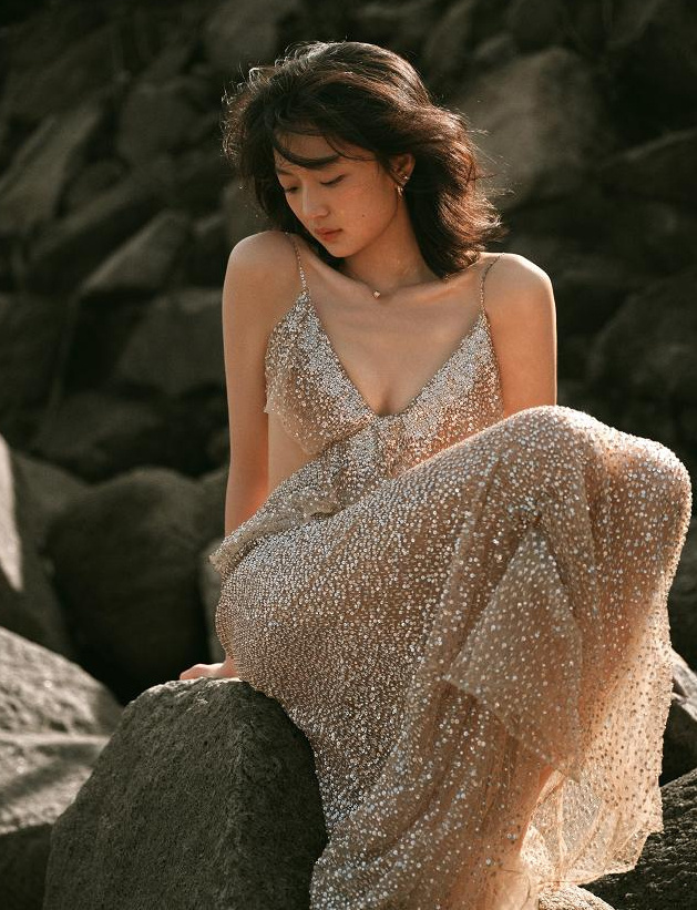 探娱乐孙千 28岁的孙千看着就很成熟性感啦,刚出道时期满脸的胶原蛋白,出演《快把我哥带走》时秒一角时,饰演的“暴力妹妹”看着就像二十出头的样子,特别符合角色的要求,如今一晃就28岁啦,在穿衣方面上也都大胆的挑战,穿起来特别能展现出她完美的身材!这件星光点缀的吊带露腰裙,肩带真的好细,穿起来露出美丽的锁骨,这身材谁看了能不羡慕呀?不过话说她这短发配上这性感的长裙,也能展现出她的秀丽美,果然很天生丽质!