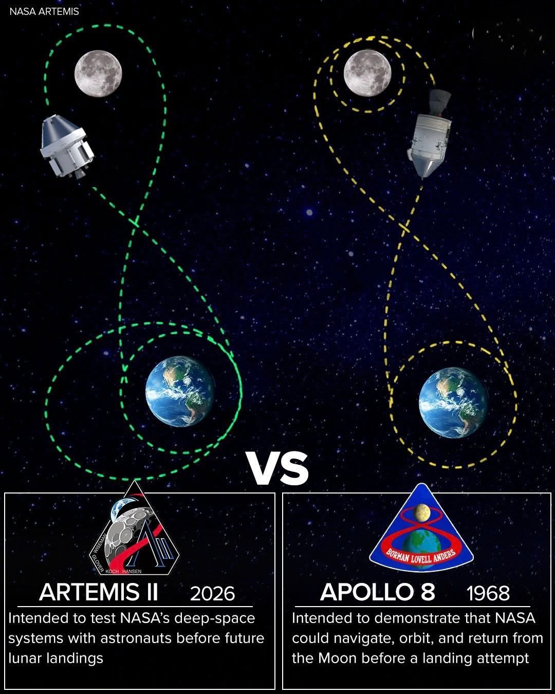 阿尔忒弥斯2号 2026年阿尔忒弥斯2号载人掠月飞行VS1968年阿波罗8号载人绕月飞行