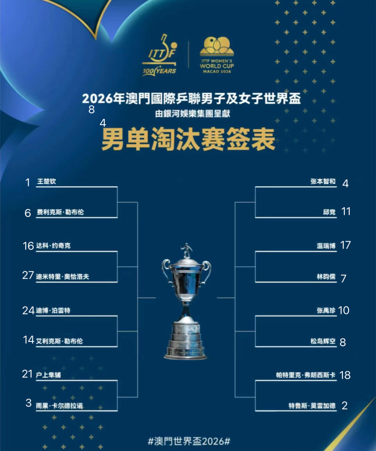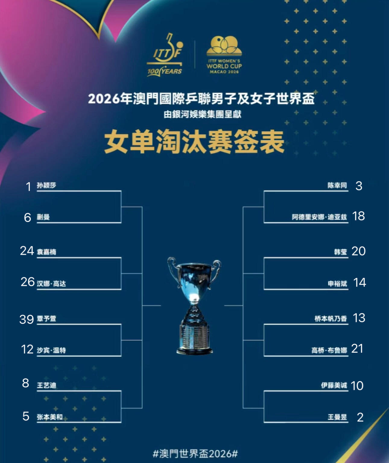 澳门世界杯抽签愚人节这抽签也是绝了16强抽签,首轮淘汰赛又配平了。莎莎和大头第一场都是打世排6。小组赛的两场,第一场各自让对方得16分,第二场都让对方得17分,真的是太巧了。可惜莎莎第一场就是内战,还好男单的两根苗分在了不同半区。加油!每场都是硬仗!