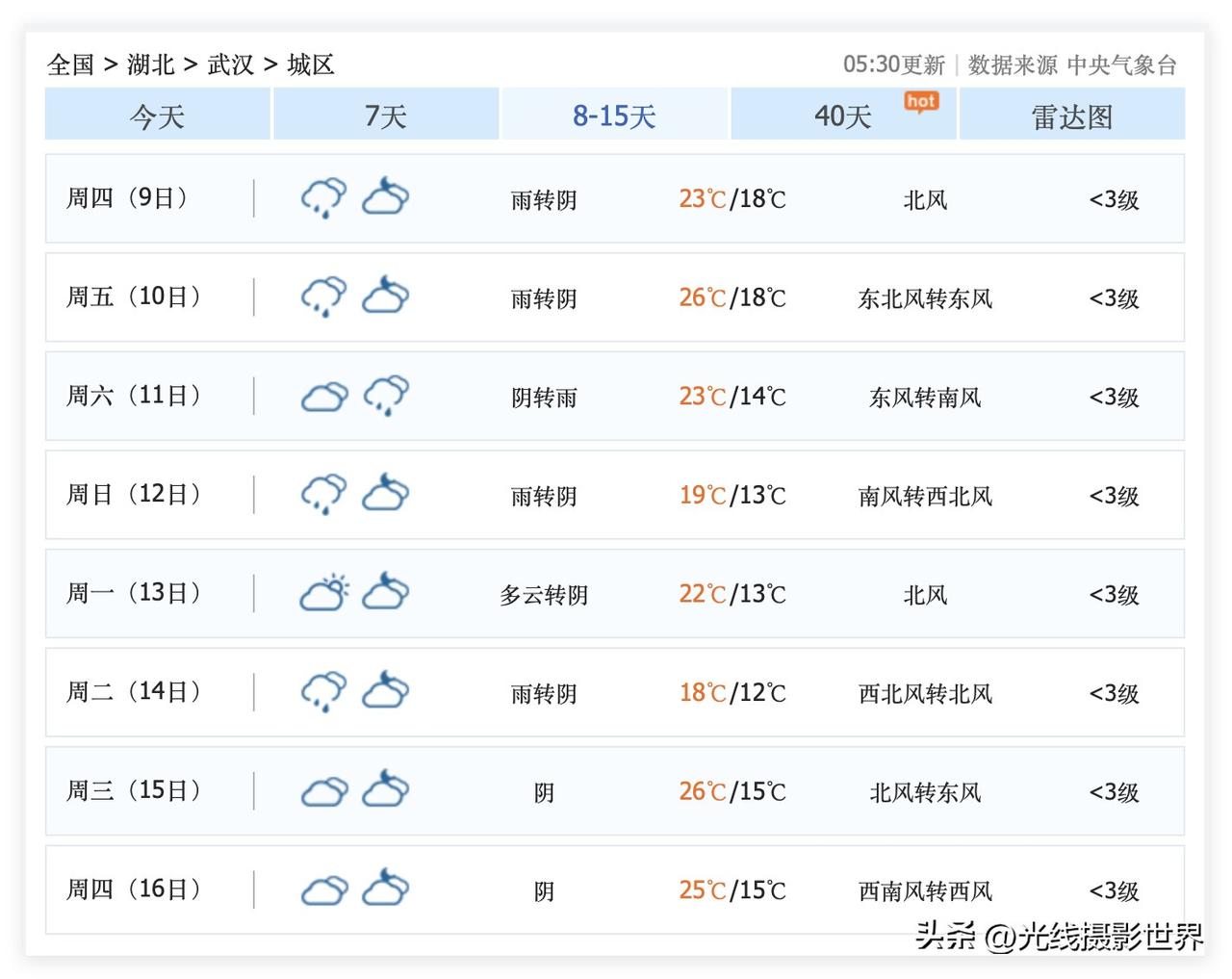 尽管今天武汉小雨,但是,明天,武汉就要迎来持续多云晴好的好天气啦!4月3日到7日,武汉市不下雨,清明节假期和春假,武汉天气,非常适合踏青赏花,武汉植物园将会超级火爆!但是,中央气象台的最新天气预报显示,4月8日,武汉市将会迎来新一轮降雨…… 4月8日到16日,武汉市,阴雨天又要变成主旋律…… 所以,湖北人,武汉人,好好珍惜清明节假期的好天气吧! 春假和清明节叠加,这个清明节,武汉植物园可能会是最火爆的地方吧?!嗯,还有哪里?!湖北麻城的杜鹃花,最近非常值得去看看啦! 嗯嗯,武汉大学的樱花,应该过季了吧?!
