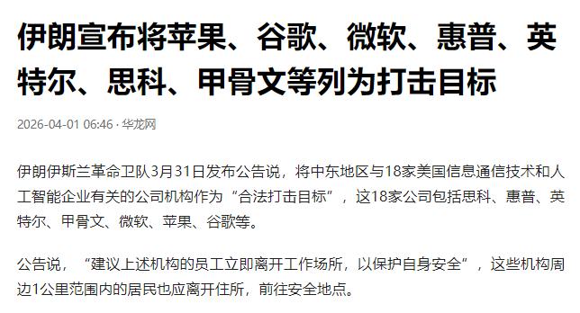 伊朗革命卫队向美国发出警告:只要美国对伊朗暗杀一次,伊朗将以下18家美国科技业将全部被摧毁,包括苹果 谷哥 微软、英伟达、特斯拉、甲骨文和美国数据分析公司帕兰提尔等。 伊朗这警告可不是空喊口号,背后是实打实的底气和算得明明白白的战术。 这些公司看着是商业实体,实则是美国全球霸权的隐形支柱,不光攥着海量财富,还深度绑定美国的军事、经济和科技命脉。 苹果、谷歌、微软这些名字看着眼熟,日常用着它们的产品,可它们的影响力早就超出了消费领域。 帕兰提尔的数据分析技术常年为美军提供情报支持,英伟达的高端芯片是武器系统的核心组件,甲骨文的数据库支撑着美国国防后勤,这些公司早就是美军暗杀、制裁等行动的技术帮凶,伊朗拿它们开刀,本质是对美国“国家恐怖主义”的对等反制。 从实力来看,伊朗真有搅动这些科技巨头根基的本事。 2010年“震网”病毒袭击纳坦兹核设施后,伊朗痛定思痛,不仅成立了革命卫队网络电子司令部,还培养了大批国家层面的黑客力量。 这些年伊朗没少用网络手段反击,之前就有黑客组织成功瘫痪美国银行系统、干扰石油设施运营的案例,连微软每年砸10多亿美元打造的网络防御中心,都不敢说能百分百挡住国家级别攻击。 更关键的是,网络攻击成本低、见效快,不用跨国作战,就能让美国科技公司付出天价损失,比如一次大规模数据泄露或服务瘫痪,可能导致市值瞬间蒸发数十亿,这种威慑力比单纯的军事打击更直接。 更厉害的是,如今伊朗的弹道导弹接入了北斗加密信号,圆概率误差能压缩到30米,足以精准命中加固后的数据中心、区域总部或供应链枢纽。 这些美国科技公司在中东都有跑不了的设施,谷歌在全球有11个国家的29个数据中心,中东作为关键节点不可能空白,苹果、特斯拉的区域分销中心、维修基地也都分布在迪拜、特拉维夫等城市,这些都在伊朗导弹1400公里的射程覆盖内。 更让人不敢小觑的是,伊朗导弹月产能战时能从200枚飙升到480枚,一旦冲突升级,完全有能力持续打击这些分散的目标,让美国科技公司在中东的业务彻底停摆。 选这18家公司,伊朗更是算准了“打蛇打七寸”。这些公司撑起了美国科技行业的半壁江山,仅之前一次市场波动,美国科技七巨头就蒸发了8000亿美元市值,要是遭遇针对性打击,损失只会更惨重。 苹果的全球供应链里,中东是重要的转运和销售市场;微软的云服务支撑着无数企业运营;特斯拉在中东的超级工厂和销售网络,直接关系到其全球产能布局。 伊朗不用全面开战,只要定点打击这些公司的区域核心设施,就能引发连锁反应,供应链断裂、服务中断、用户流失,每一项都能让这些巨头疼到骨子里。 而且这些公司的股价对市场情绪极度敏感,哪怕只是受到威胁,投资者恐慌性抛售就会让市值大幅缩水,这种经济层面的打击,比单纯的军事对抗更能刺痛美国。 伊朗的战术高明之处,在于用非对称手段破解美国的暗杀优势。美国总想着靠定点清除伊朗高层掌控局势,可伊朗没法直接对美国本土发动大规模军事打击,就把目标转向了美国在全球的“利益代言人”。 这些科技公司在美国政界影响力极大,苹果、微软的游说团队常年活跃在国会山,它们的利益受损必然会向政府施压,迫使美国在对伊政策上有所收敛。毕竟对美国政客来说,科技巨头的捐款和选票影响力,可比远在中东的地缘政治博弈更实际。 更关键的是,伊朗已经具备了持续施压的能力。经过四十多年西方制裁,伊朗早就建成了相对完整的自主科技体系,能自主发射遥感卫星提供侦察支持,导弹核心部件实现国产化,网络部队能发动协同攻击。这种体系化能力让伊朗不用依赖外部支持,就能长期维持对美国科技公司的威慑。 之前伊朗已经用无人机袭击了以色列的西门子工业软件中心和AT\\u0026T电信中心,这可不是警告,而是实打实的示范,证明只要美国敢动手,伊朗就有能力立刻兑现承诺。 这背后其实是美伊博弈的新升级。过去美国靠军事和经济优势压着伊朗打,现在伊朗找到了反制的关键:你打我的人,我就打你的钱袋子和技术根基。 伊朗不用追求彻底摧毁,只要不断制造麻烦,让这些公司的运营成本飙升、市场信心崩塌,就能达到反制效果。 其他国家看到伊朗的做法,可能会纷纷效仿,针对美国科技巨头的非对称打击可能成为新的博弈方式。 对这些科技公司来说,过去只需要应对商业竞争和普通网络攻击,现在要直面国家层面的军事和网络双重威胁,运营风险陡增。 它们要么投入更多资金加固全球设施,要么不得不调整布局,减少在冲突地区的存在,这本身就意味着美国科技影响力的收缩。 未来只要美国不停止对伊朗的敌对行动,这种针对科技巨头的威慑就会一直存在,而这些看似不可一世的美国公司,恐怕得从此提心吊胆地应对来自中东的持续压力。