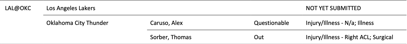 湖人对阵雷霆伤病报告:斯玛特(右踝挫伤)缺阵巴夫金、克内、阿杜在南湾湖人。