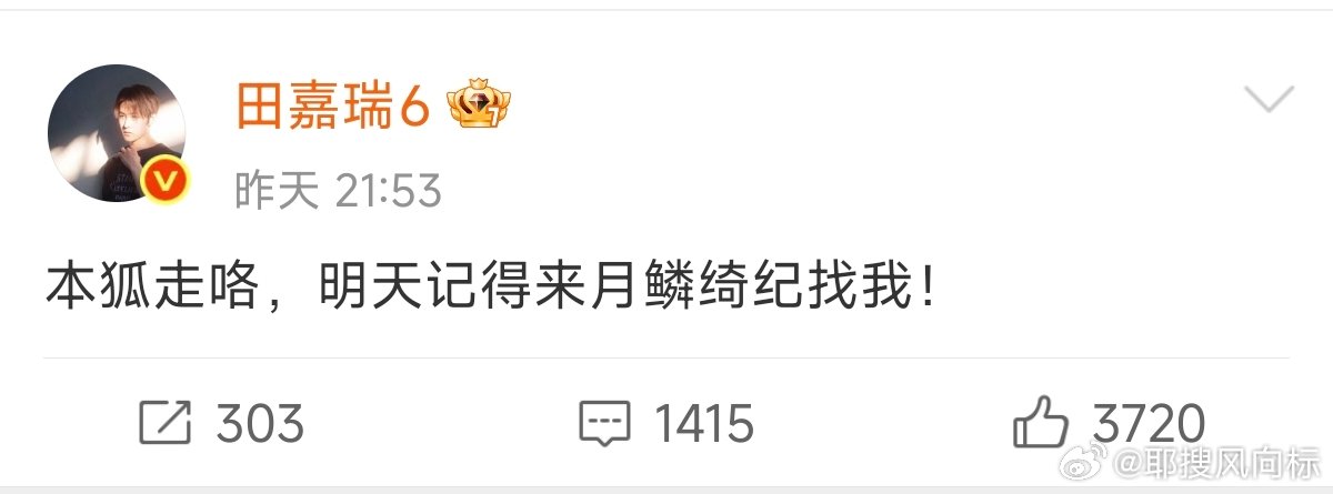 田嘉瑞说记得来月鳞绮纪找我田嘉瑞寄灵上线 田嘉瑞月鳞绮纪寄灵上线,田嘉瑞空降超话发文说:记得来月鳞绮纪找我!”