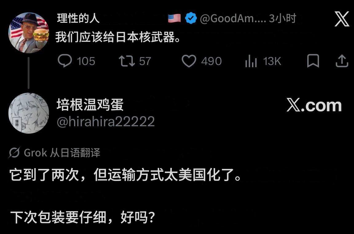 马斯克真的,天天好闲,感觉比我还闲。。。 一个美国人说:我们应该给日本人核武器。