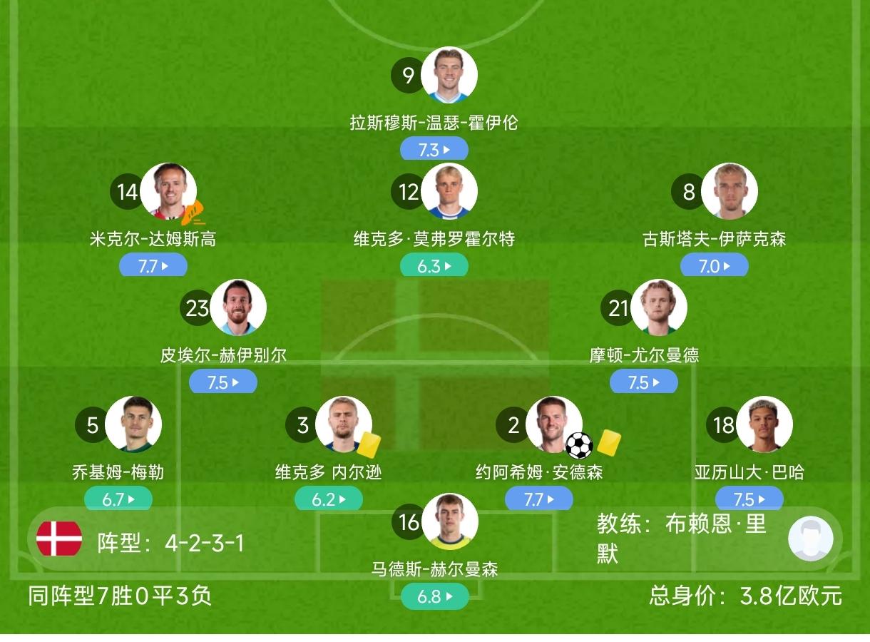 丹麦海盗的愚蠢,远超意大利队,一手好牌打的一言难尽,他们犯了太多错误! 丹麦队被捷克队淘汰了,死于点球大战! 遥想当年,丹麦队幸运地递补欧洲杯,在舒梅切尔率领下,气吞万里如虎,横扫欧洲,书写了足坛的丹麦童话!! 如今,丹麦队实力有目共睹,霍伊伦德、伊萨克森、达姆斯高、霍伊别尔,尤尔曼德都是赫赫有名的高手! 在小组赛,他们一路领先,在最后两场比赛,却像被打了迷魂药一般,主场2-2战平白俄罗斯,而此前的客场丹麦5-1客场大胜白俄罗斯! 抓住这场比赛,丹麦队就提前出线了! 紧接着,丢了魂的丹麦队,客场被苏格兰4-2击败!只能参加附加赛! 赢得仓皇北顾的丹麦队好歹在半决赛4-0大胜北马其顿,但只是回光返照而已! 决赛对阵意志顽强的捷克,霍伊伦德首轮就踢飞了点球,最终饮恨! 这支球队实力足够,又有太多的机会,但却遗憾出局,令人深思!